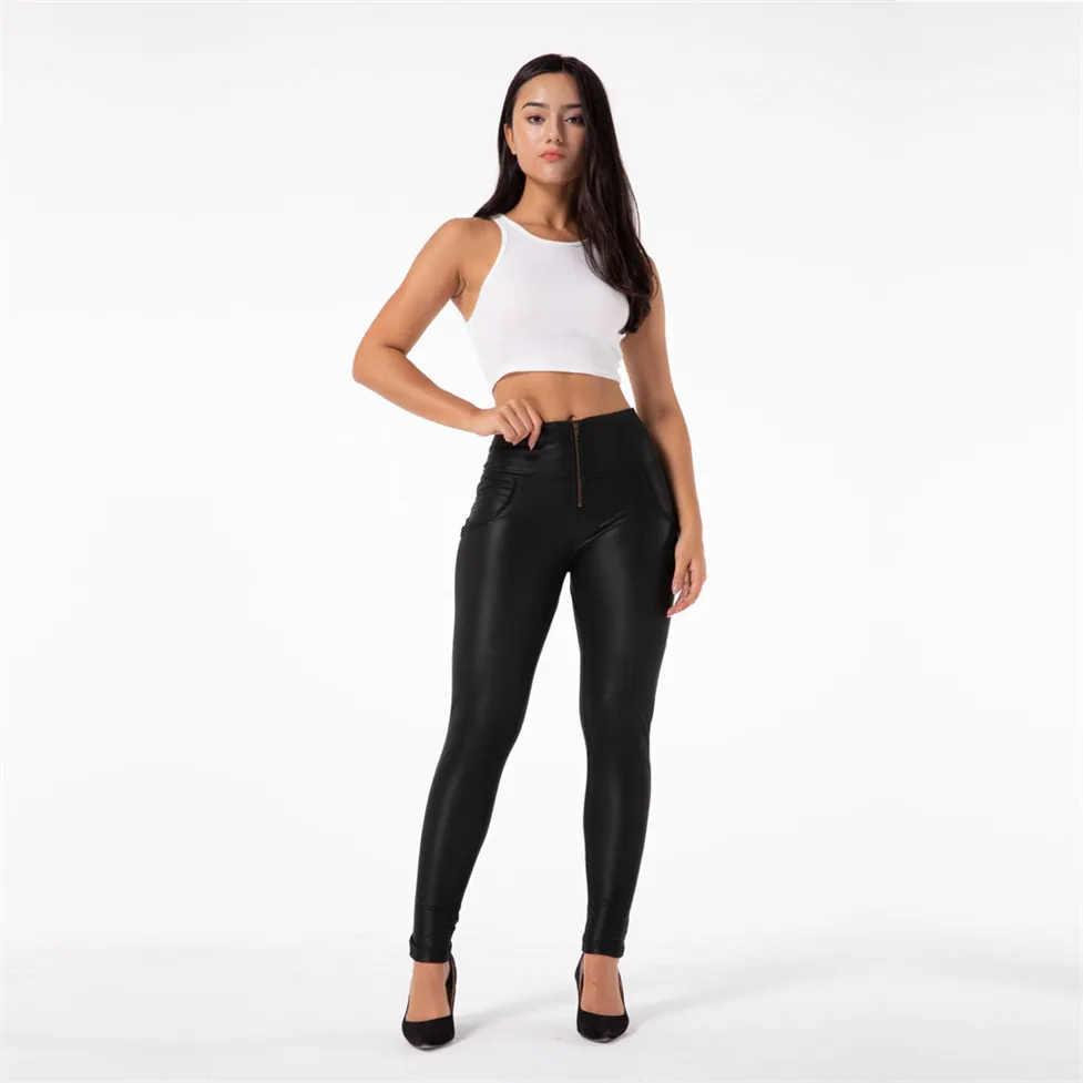 Кожаные штаны Melody с высокой талией, черные облегающие штаны для фитнеса, женские удобные корректирующие штаны с флисовой подкладкой