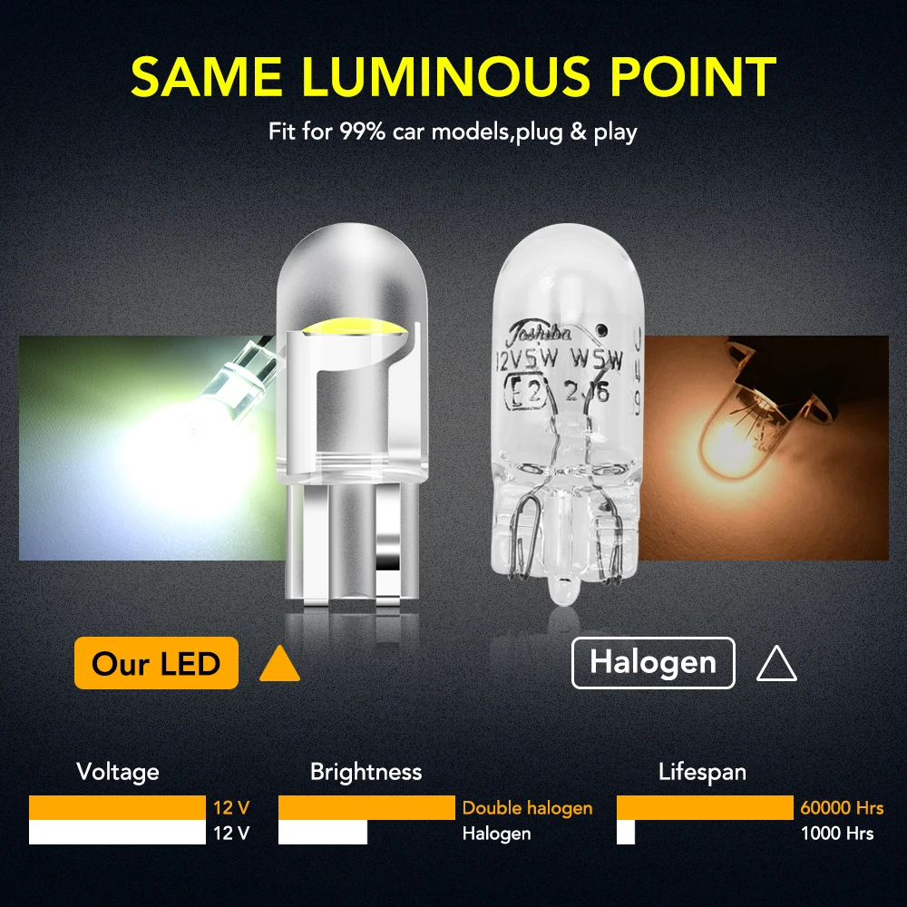 10 шт. Автомобильные светодиодные лампы T10 W5W COB для Peugeot 206...