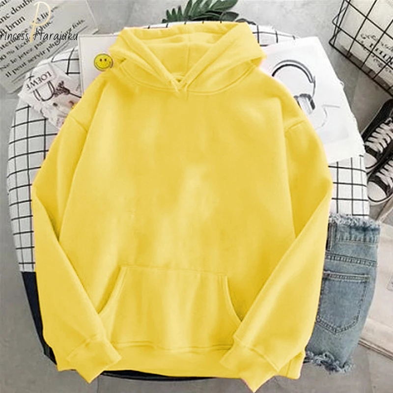 Модные осенние женские толстовки в стиле Харадзюку, 4 цвета, желтая толстовка, Свободный свитшот с капюшоном в Корейском стиле, уличная одежда, пуловеры с длинным рукавом
