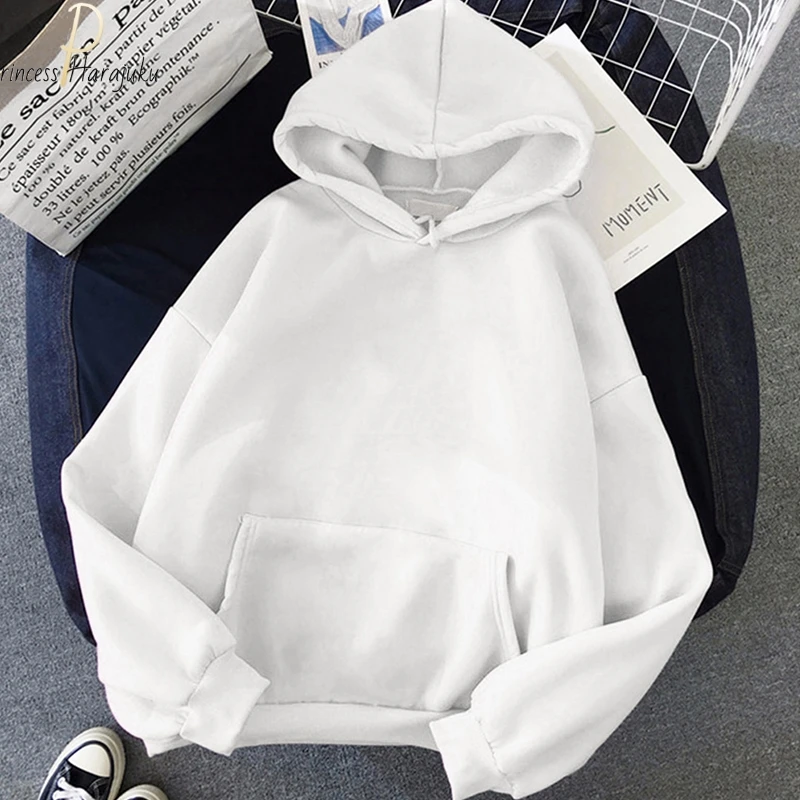 Толстовки Harajuku, однотонные, с капюшоном, для женщин и мужчин, т...