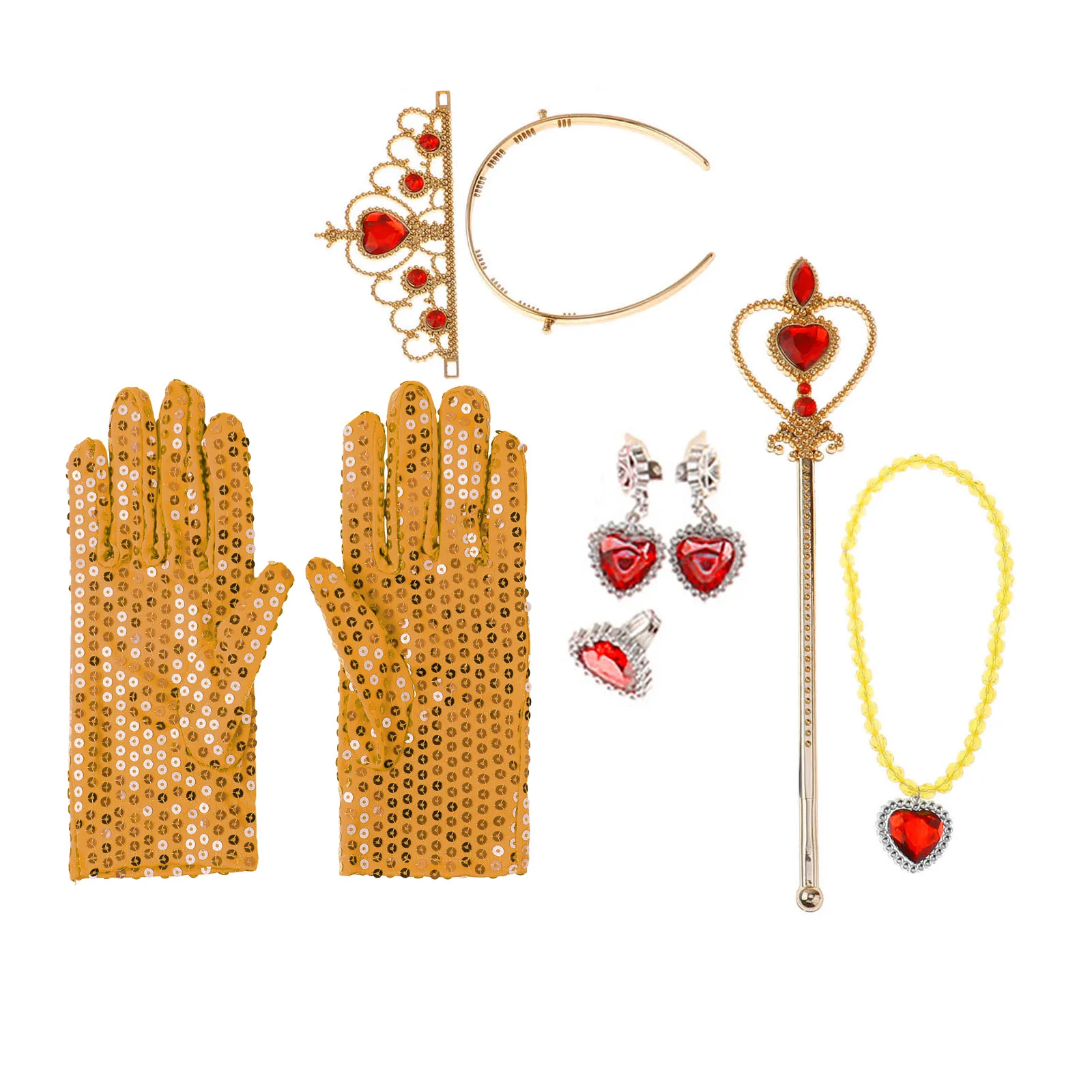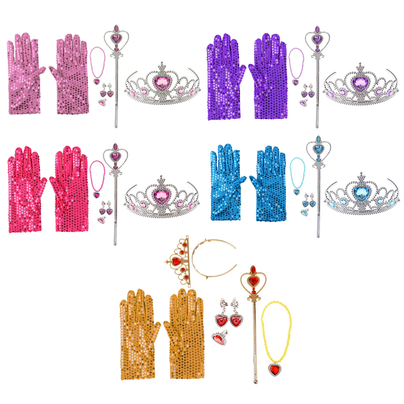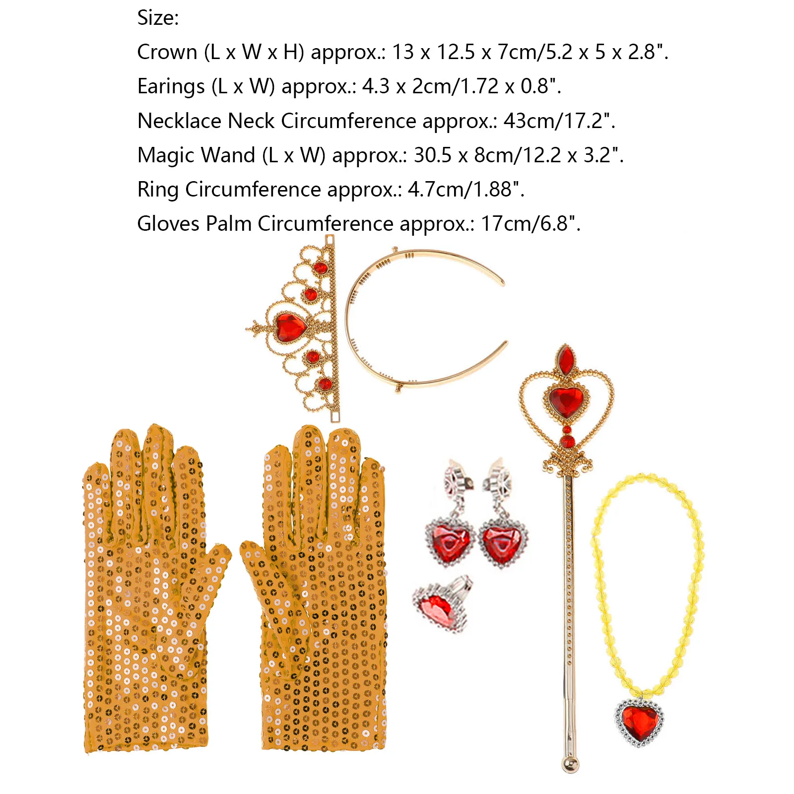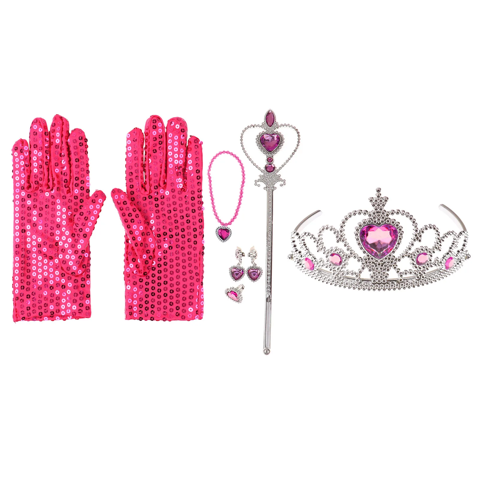 В комплект входит: 1 пара перчаток, 1 тиара, 1 палочка, с/без 1 ожерелье
