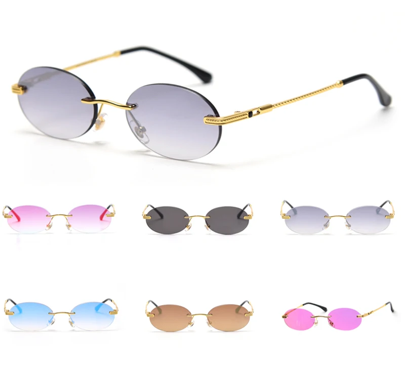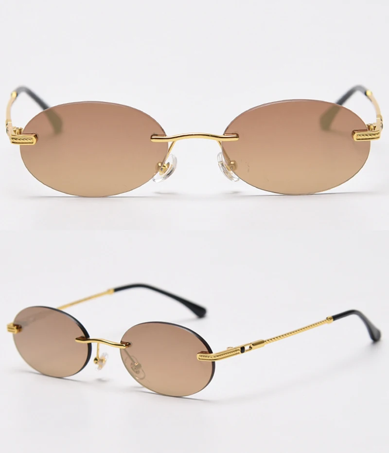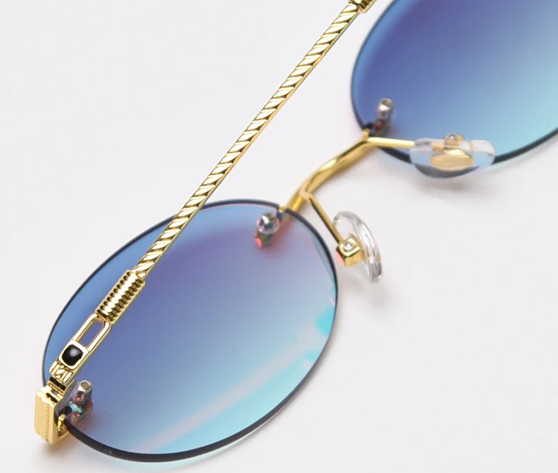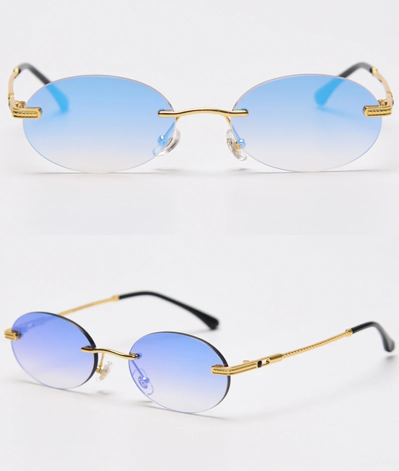 Солнцезащитные очки Peekaboo мужские, круглые, без оправы, с синим зеркальным золотистым металлическим покрытием, в стиле ретро