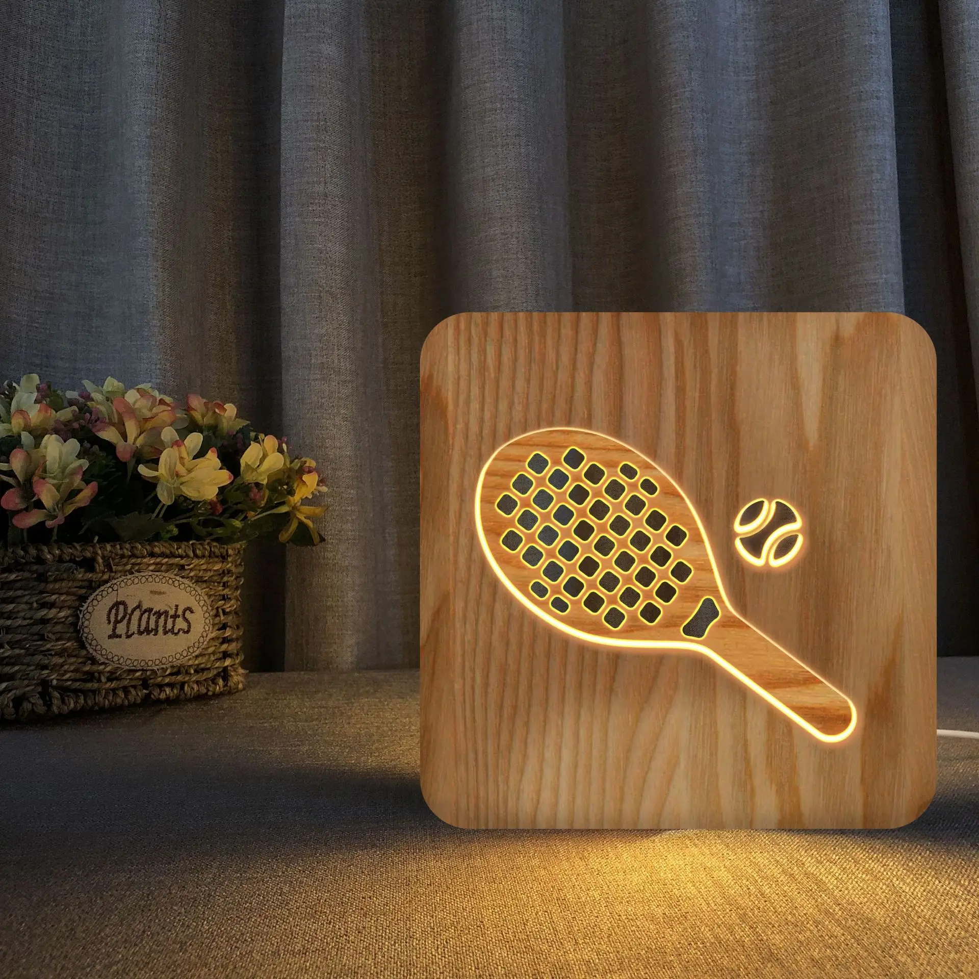 Твердый резной креативный ночной Светильник для теннисной ракетки, твердый резной Настольный светильник, новые подарки на заказ