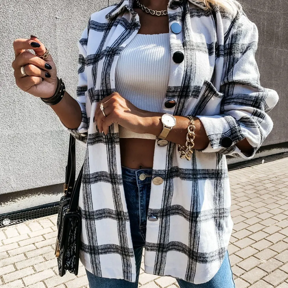 Женская клетчатая куртка с длинными рукавами на осень-зиму пальто с...