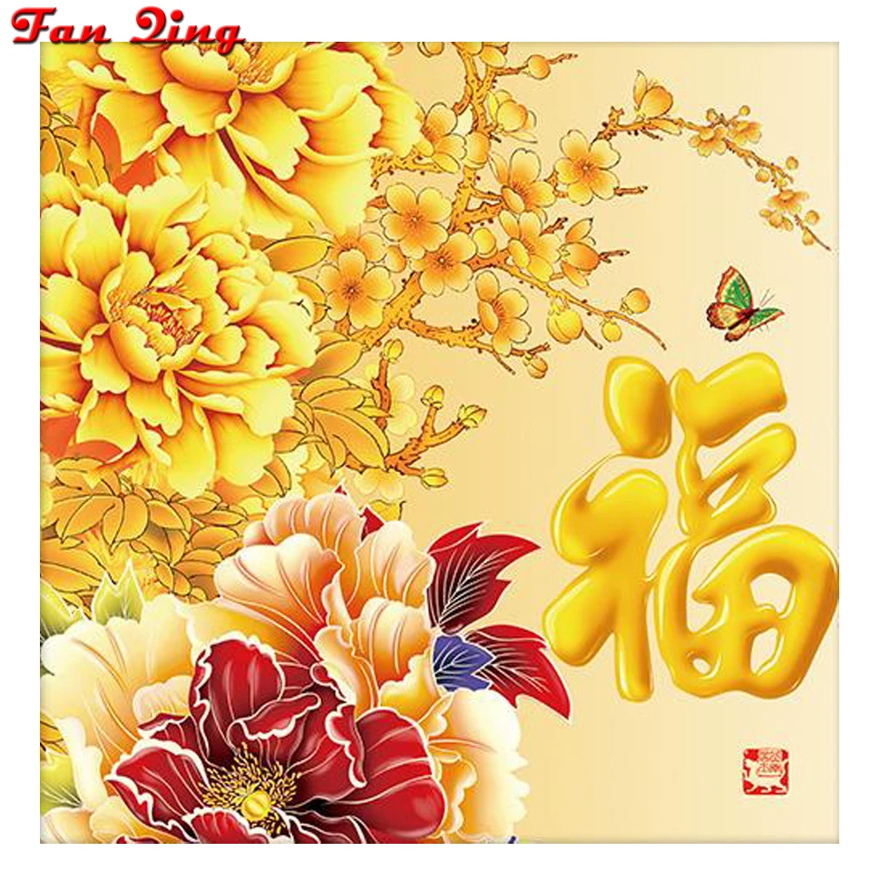 Алмазная вышивка 5D круглая квадратная полная Алмазная картина золотые цветы, благословение крестиком Мозаика рукоделие Наборы домашний декор
