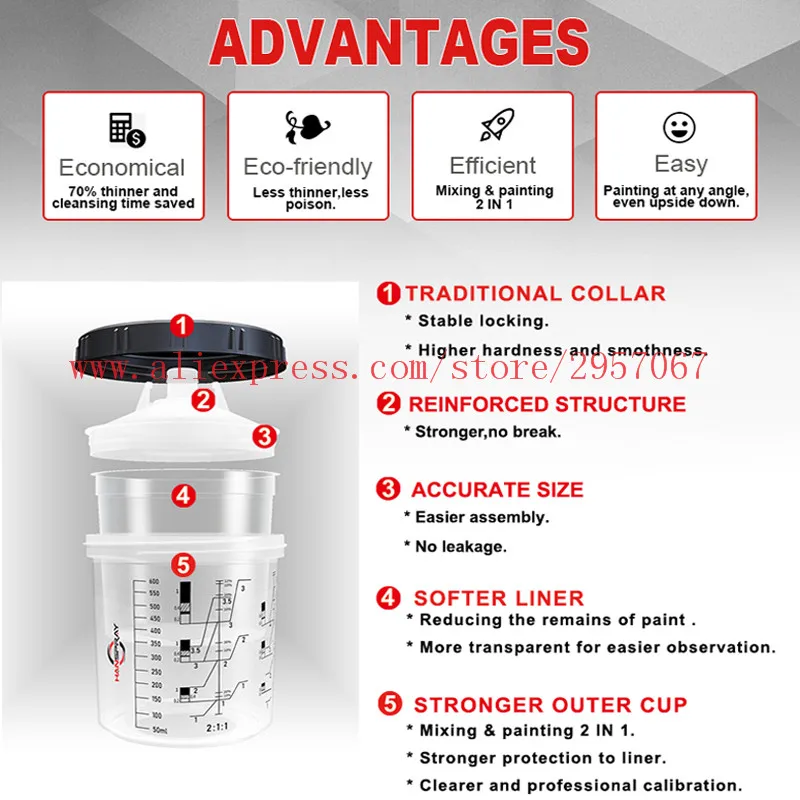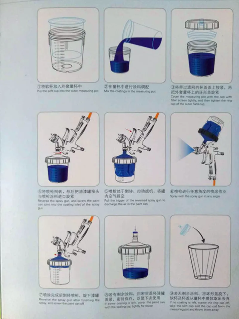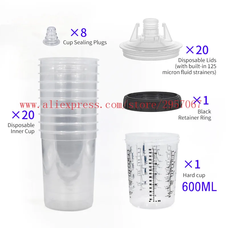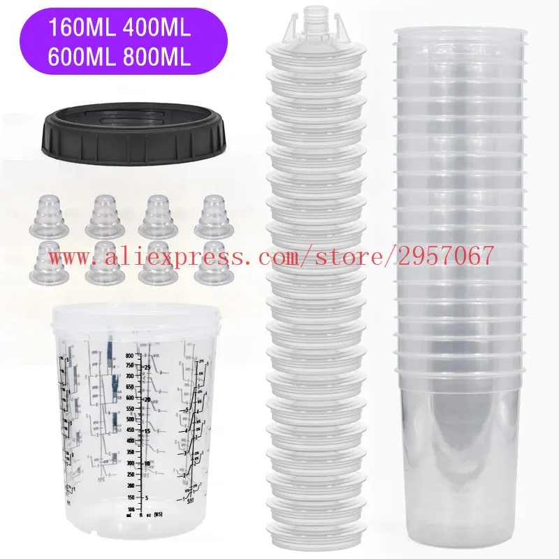Набор крышек и вкладышей для пистолета-распылителя краски 20 шт., чашка для смешивания краски 160400600800 мл, быстрая Одноразовая чашка для краски для автомобилей