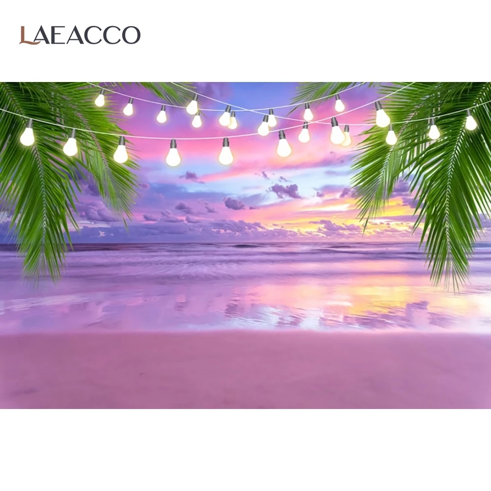 Laeacco Тропическое Розовое Небо закат светящиеся морские пляжные пальмы световые гирлянды для деревьев фоны для фотосъемки Фото фоны день рождения Фотофон