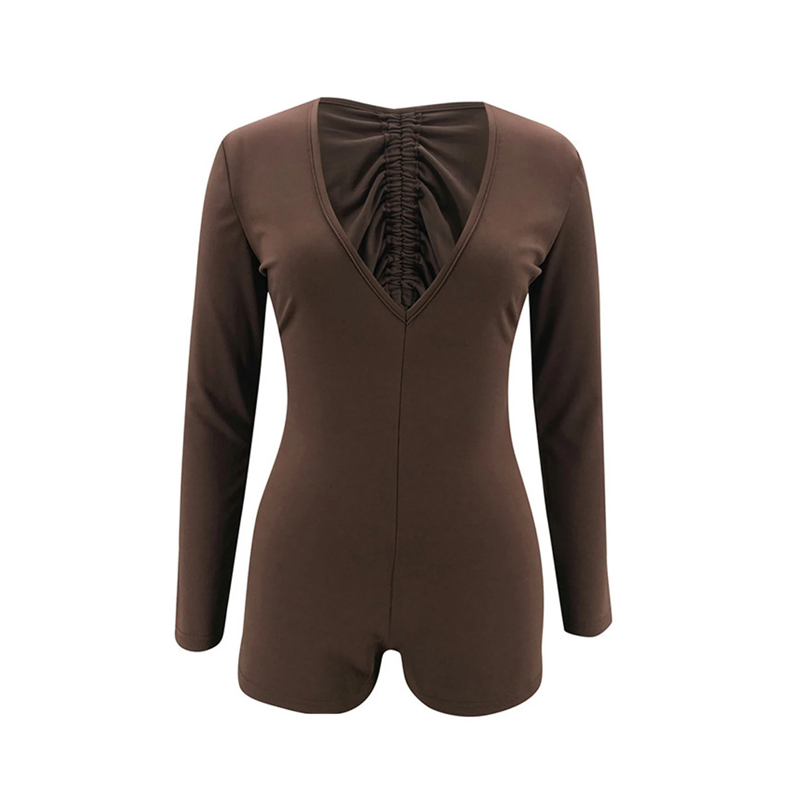 Комбинезон женский, S M L XL, коричневый, с длинным рукавом, глубок...