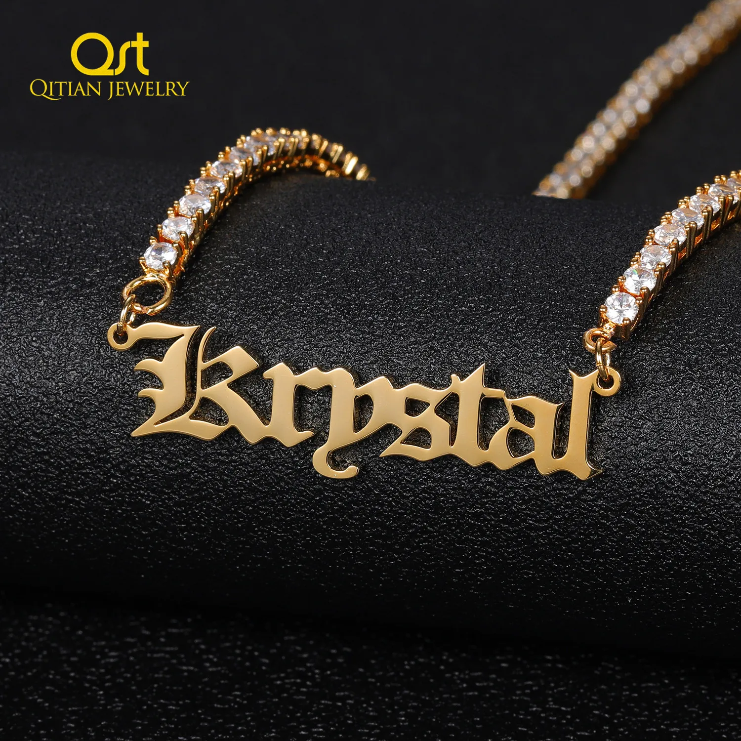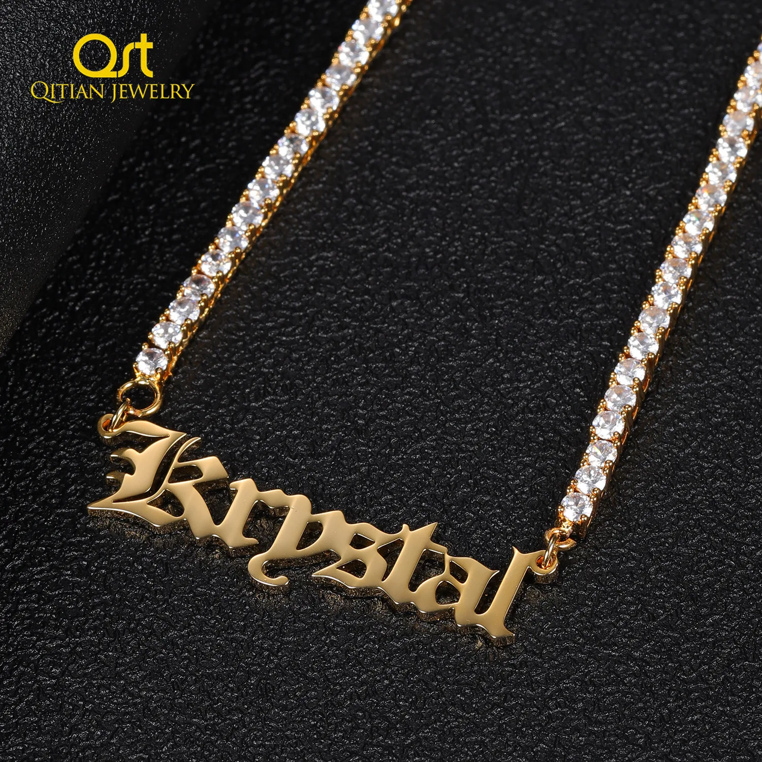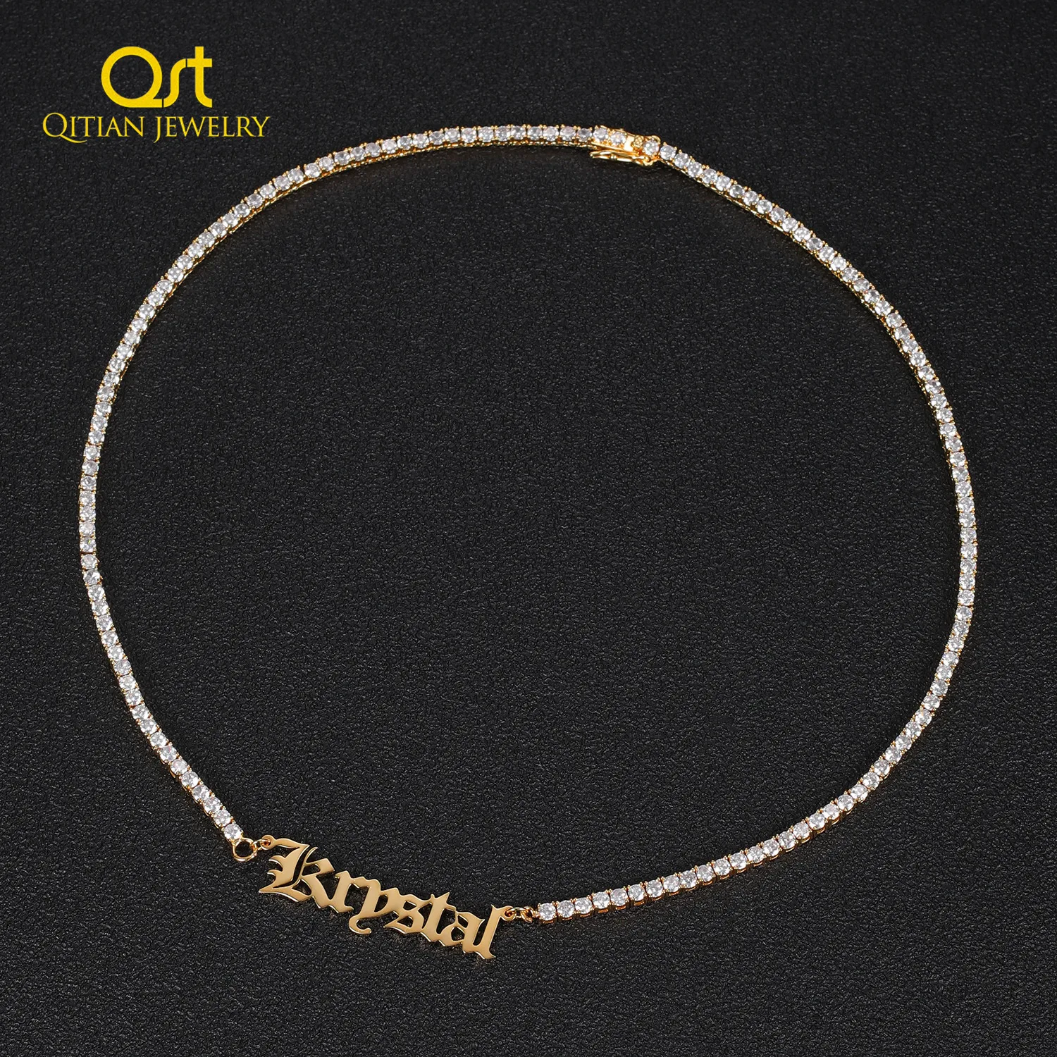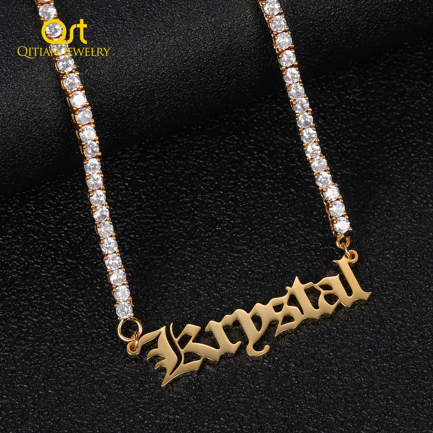 Именное ожерелье с теннисной цепочкой 3 мм, ожерелье в стиле хип-хоп, Очаровательная именная табличка из нержавеющей стали, ожерелье, ювелирные изделия, подарок для женщин