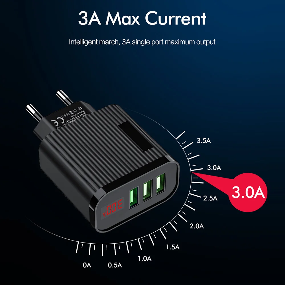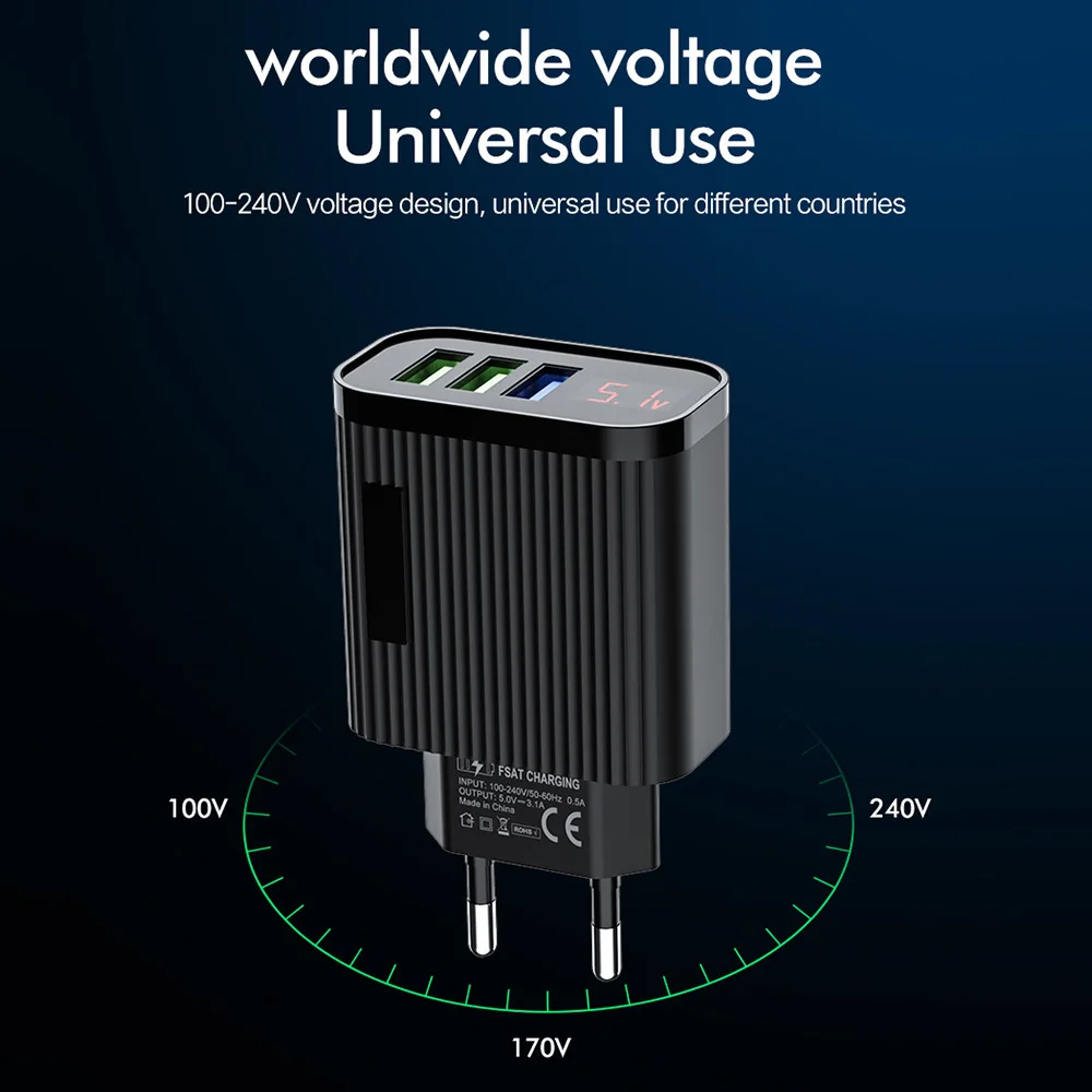 FLOVEME 15 Вт быстрое зарядное устройство 3 USB цифровой дисплей зарядный разъем для Samsung Note10 A50 A70 планшет быстрое настенное зарядное устройство адаптер штепсельной вилки ЕС