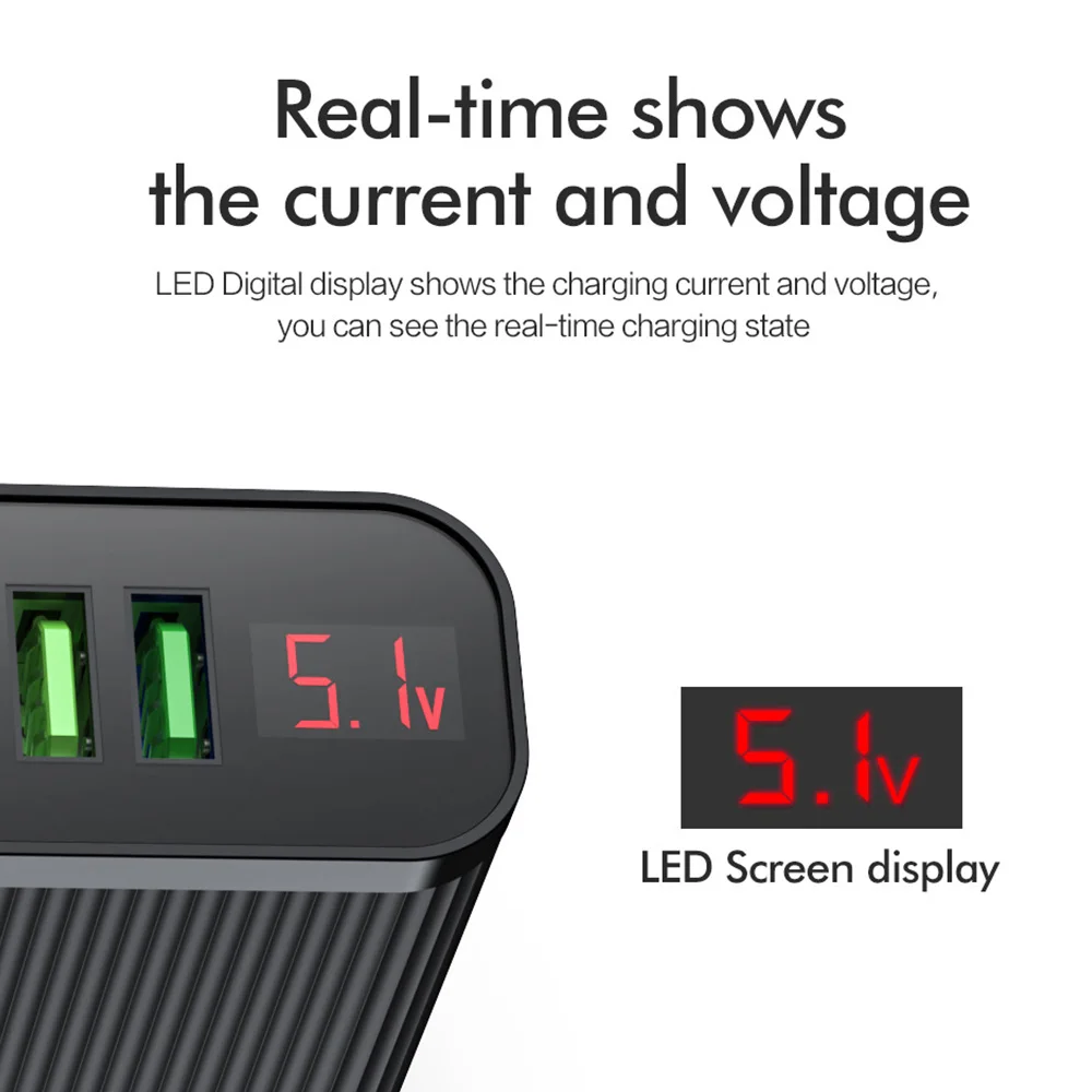 Зарядное устройство FLOVEME с 3 USB-портами и цифровым дисплеем, 15 Вт