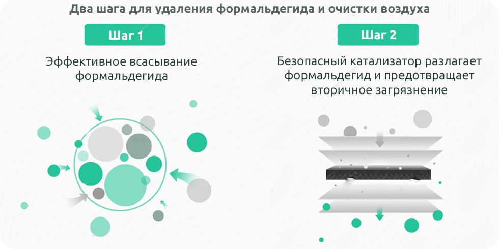 Высокоэффективная технология нейтрализации всасывает формальдегид и предотвращает его попадание в воздух. На основе технологии использования активированного угля для нейтрализации формальдегида, были использованы каталитические добавки, которые во время фильтрации способствуют разложению формальдегида на воду и углекислый газ. Образуемые в результате разложения вещества вступают в реакцию с кислородом и регенерируют катализатор, таким образом создавая постоянный цикл разложения и восстановления.