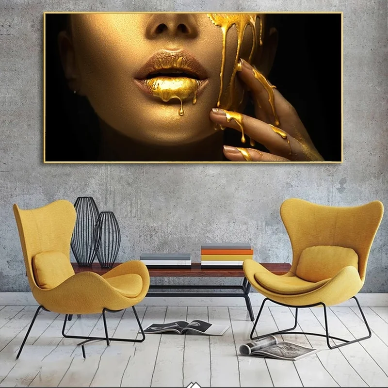 Привлекательная Африканская женщина, Золотое Лицо девушки, холст, фотообои и принты, Золотые губы, настенные картины, домашний декор для стен