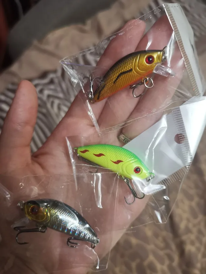 Супер Воблеры. Качество покраски хорошее,Крючки острые, цепляются за пальцы. Описанию магазина малыши соответствуют и ростом и весом и цветом. Уверен у окуней и щучек при встрече аппетит разыграется.Продавец общительный и доброжелательный. Продавцу спасибо за честную торговлю.Товар и магазин рекомендую.Всех рыбаков с Новым Годом...НХНЧ !!!