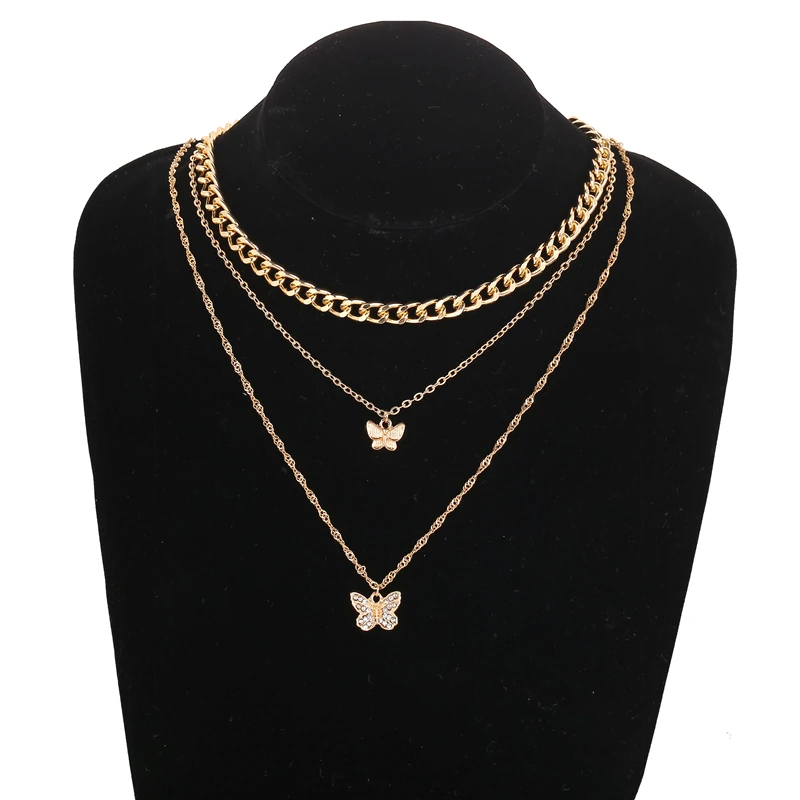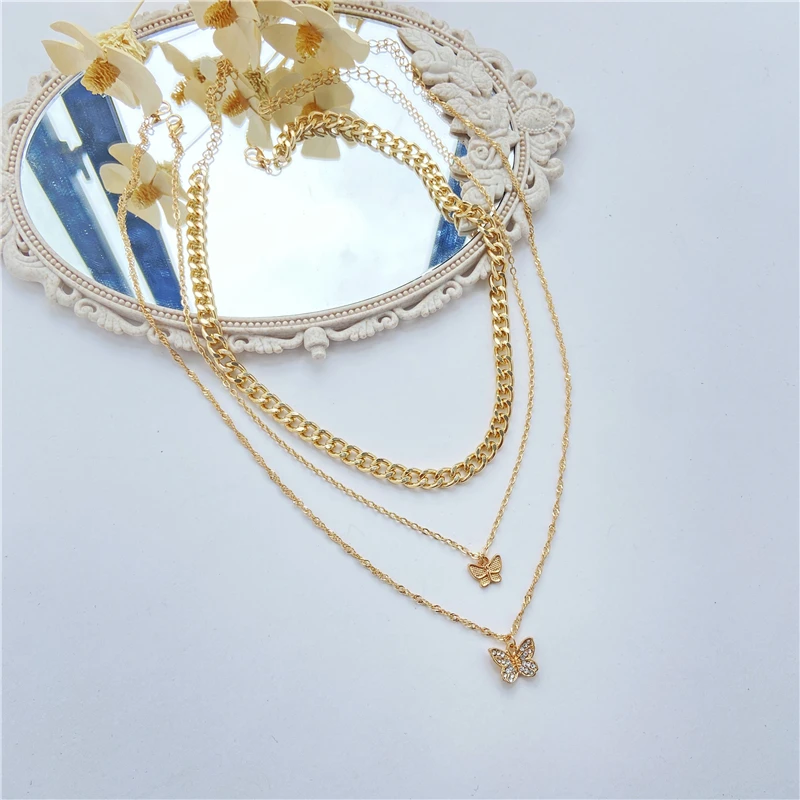 Ожерелье женское многослойное с подвеской в виде бабочки, золотого цвета