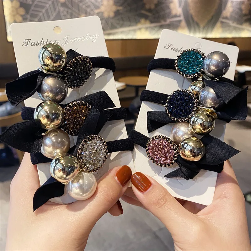 Корейский горный хрусталь резинки для волос с жемчужинами, цвета на выбор