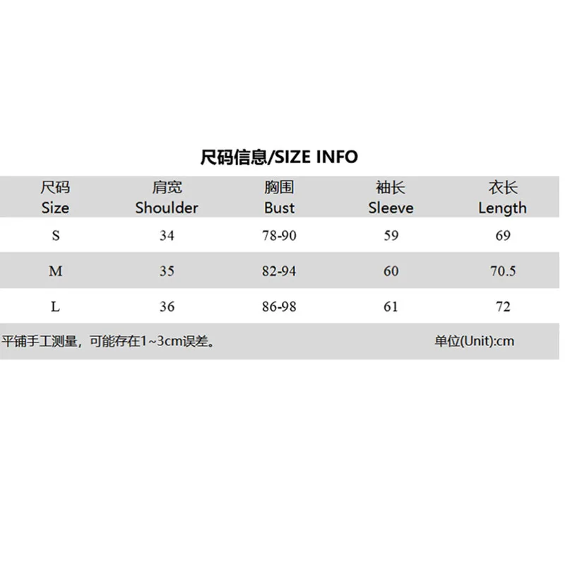 S Длина: 69 Бюст: 78-90 Рукав: 59 Плечо: 34