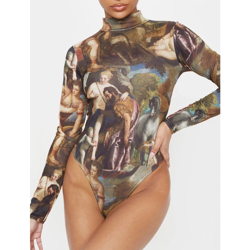 Женский базовый облегающий боди, Повседневная Водолазка с длинным рукавом, цельный облегающий купальник, топы