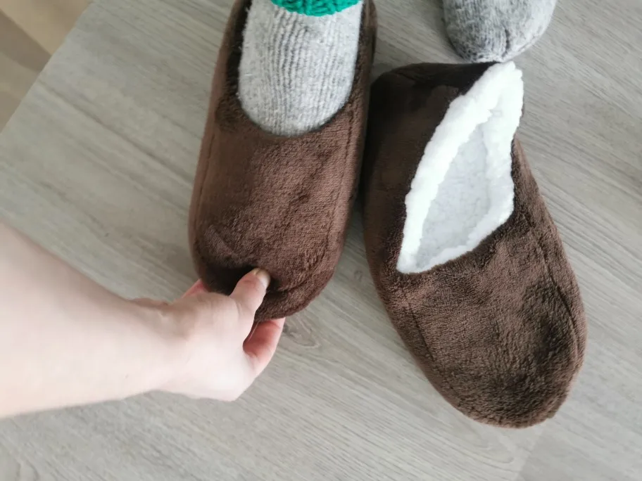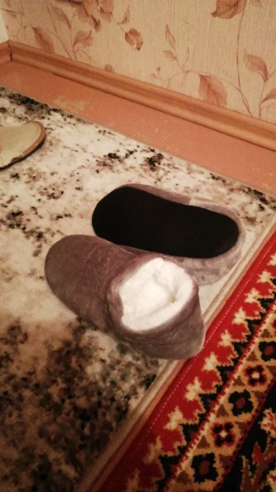 стелька в тапочках чуток не удобная, а так все отлично, нет торчащих ниток, все четко зашито, мягкие удобные теплые. Минус ток стельки которые защиты внутрь подошвы