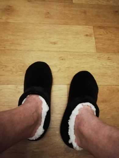 Тёплые, мягкие, очень приятные для стоп, пригодны для пододеяльного сна, особенно когда попарить ноги. Ходить только по сухому и чистому, подошва тканевая с паралончиком. У тапочек водобоязнь)))! Миролюбивые и послушные, если не ошиблись с размером. На 42