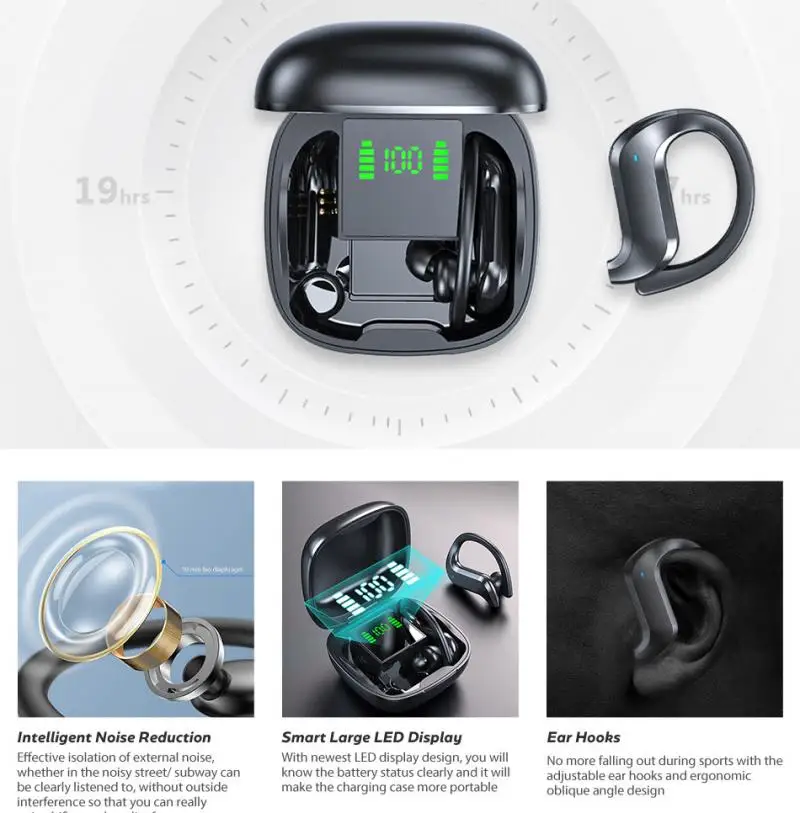● Полностью беспроводные Высокопроизводительные наушники с удобными, надежно прилегающими Ушными крючками для легкого комфорта и стабильности.