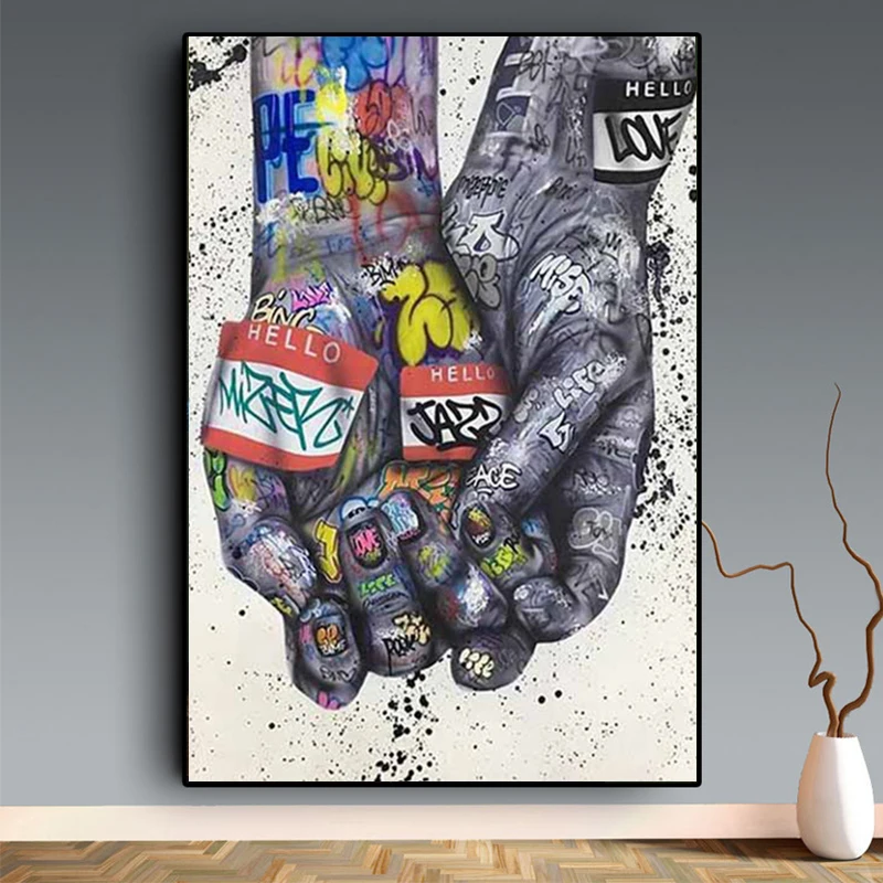 Художественная Картина на холсте с изображением граффити в уличном стиле, поцелуи, абстрактные ручные плакаты и принты, Настенная картина для гостиной, домашний декор