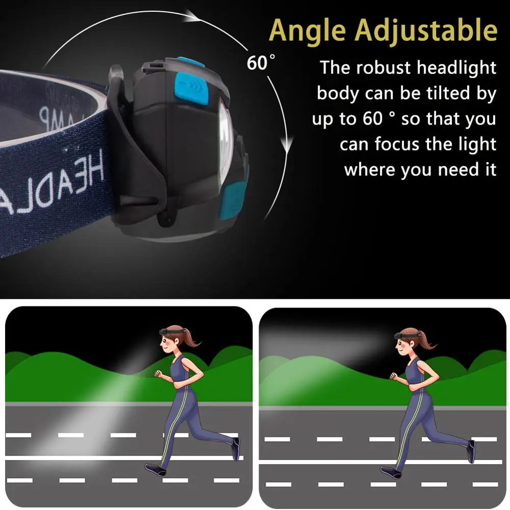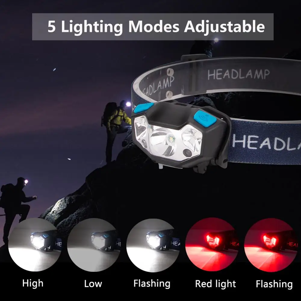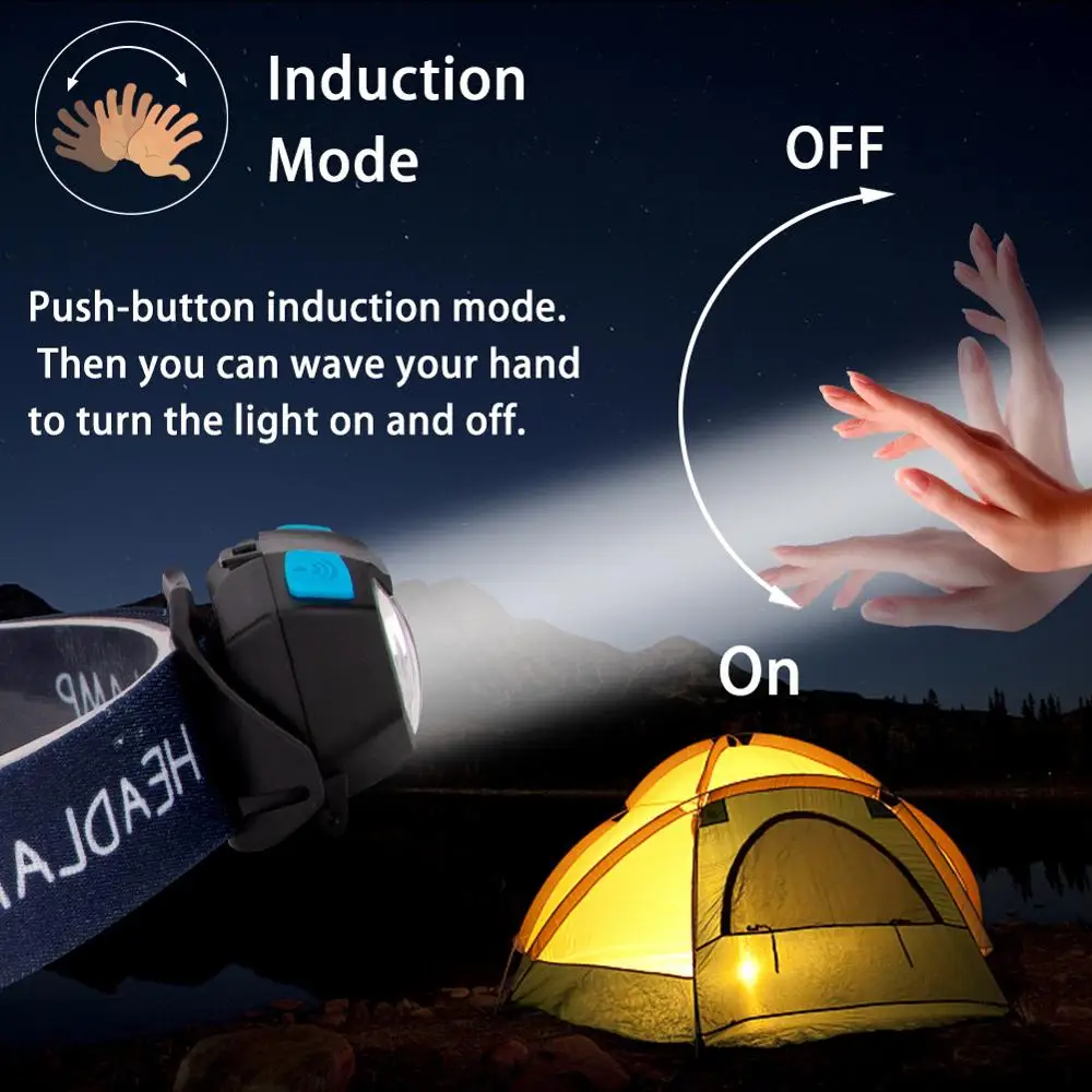 Налобный фонарь с датчиком освещенности налобный фонарь с зарядкой от USB, 5 режимов освещения, светодиодное освещение с поворотом на 60 для кемпингапоходов, налобный фонарь