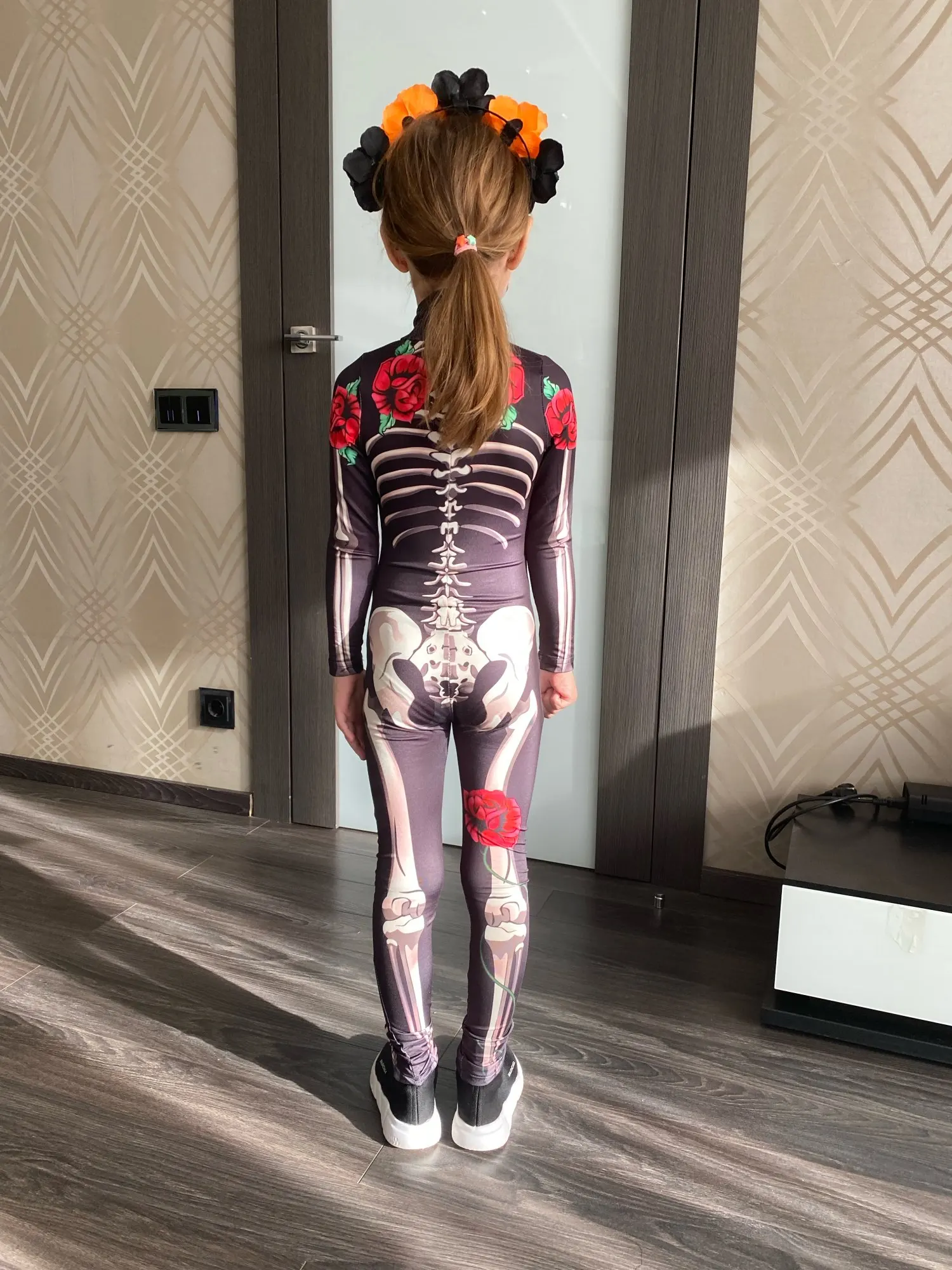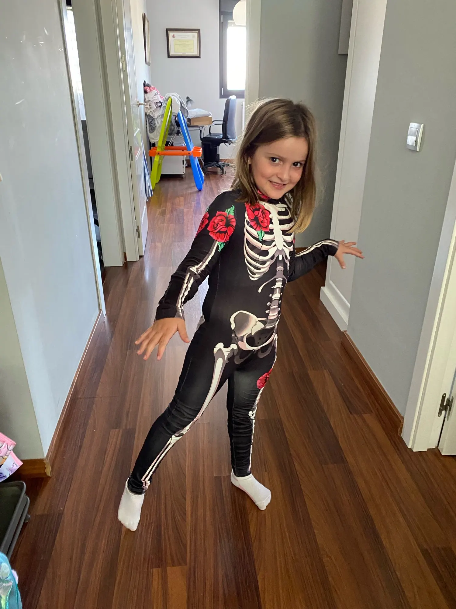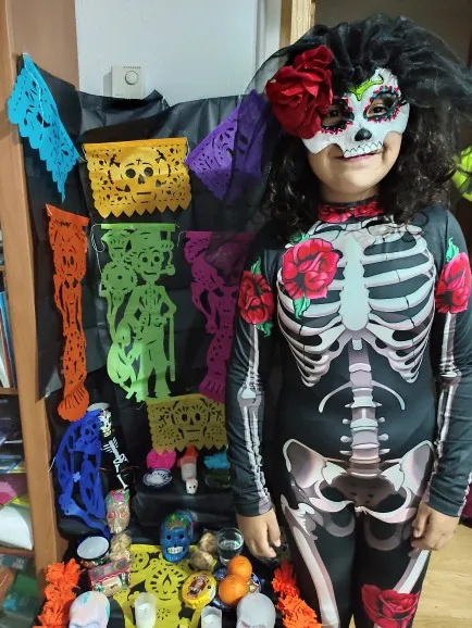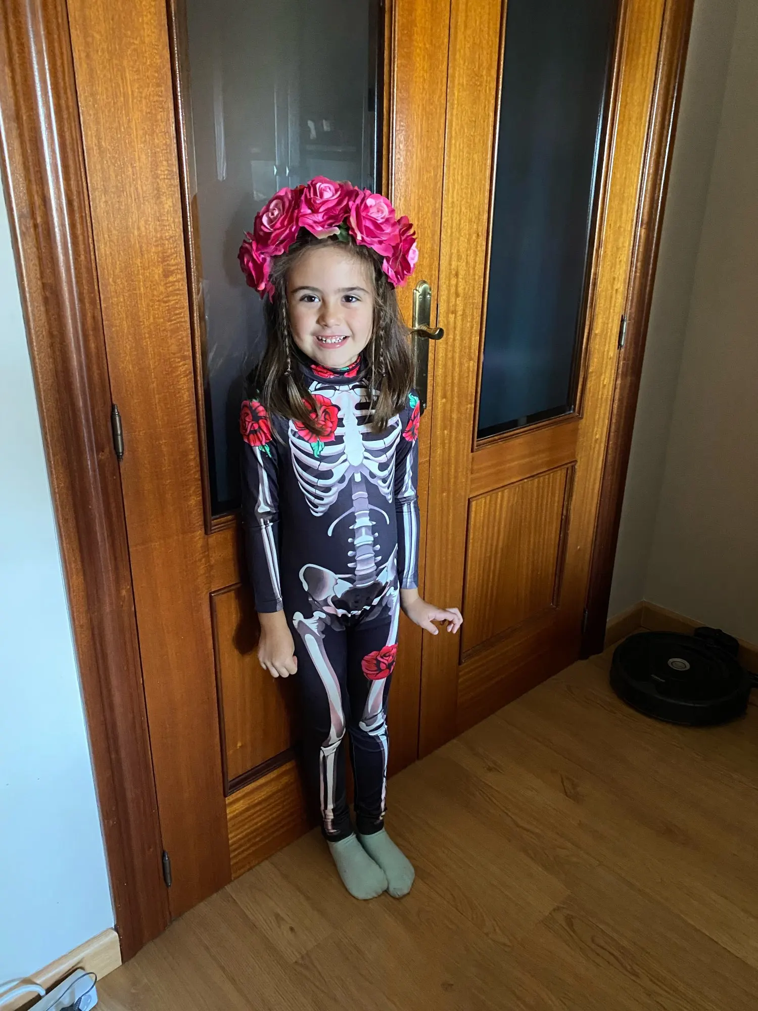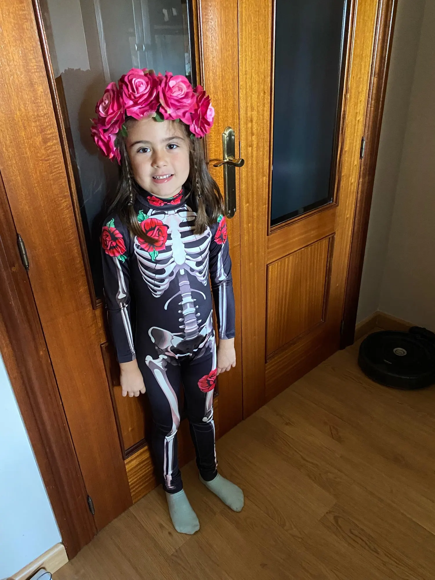 ha llegado a tiempo para Halloween así que por ese lado contento, ha tardado unos 15 días. El disfraz es bonito y está logrado, pero talla muy pequeño, sobre todo estrecho. He cogido 140 para niña delgada que mide 1.26 y apenas le entra por la pierna