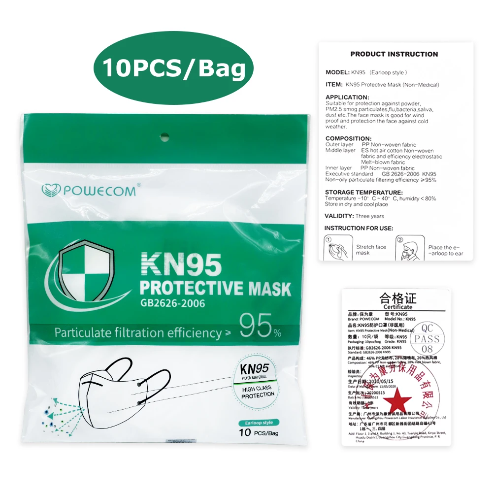 Многоразовая маска FFP2 POWECOM 10 шт., защитная маска KN95 с сертификатом CE, фильтрация 95%, PM2.5, пылезащитный респиратор для рта маска маски для лица защитные уходовые на рот многоразовая тушь для ресниц