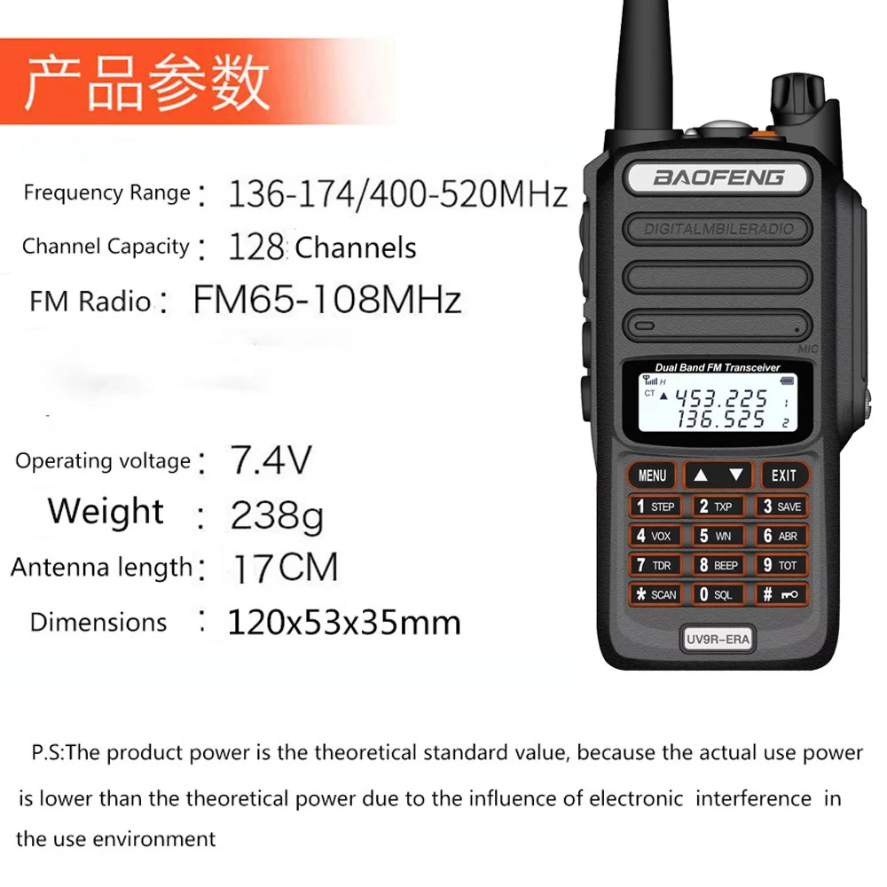 Портативный Baofeng UV 9R ERA водонепроницаемый и пыленепроницаемый (не для дайвинга), дальность действия 1-30 км для осложнения использования окружающей среды. Наш Baofeng UV 9R ERA может сделать 30-90 км с репитер радио.