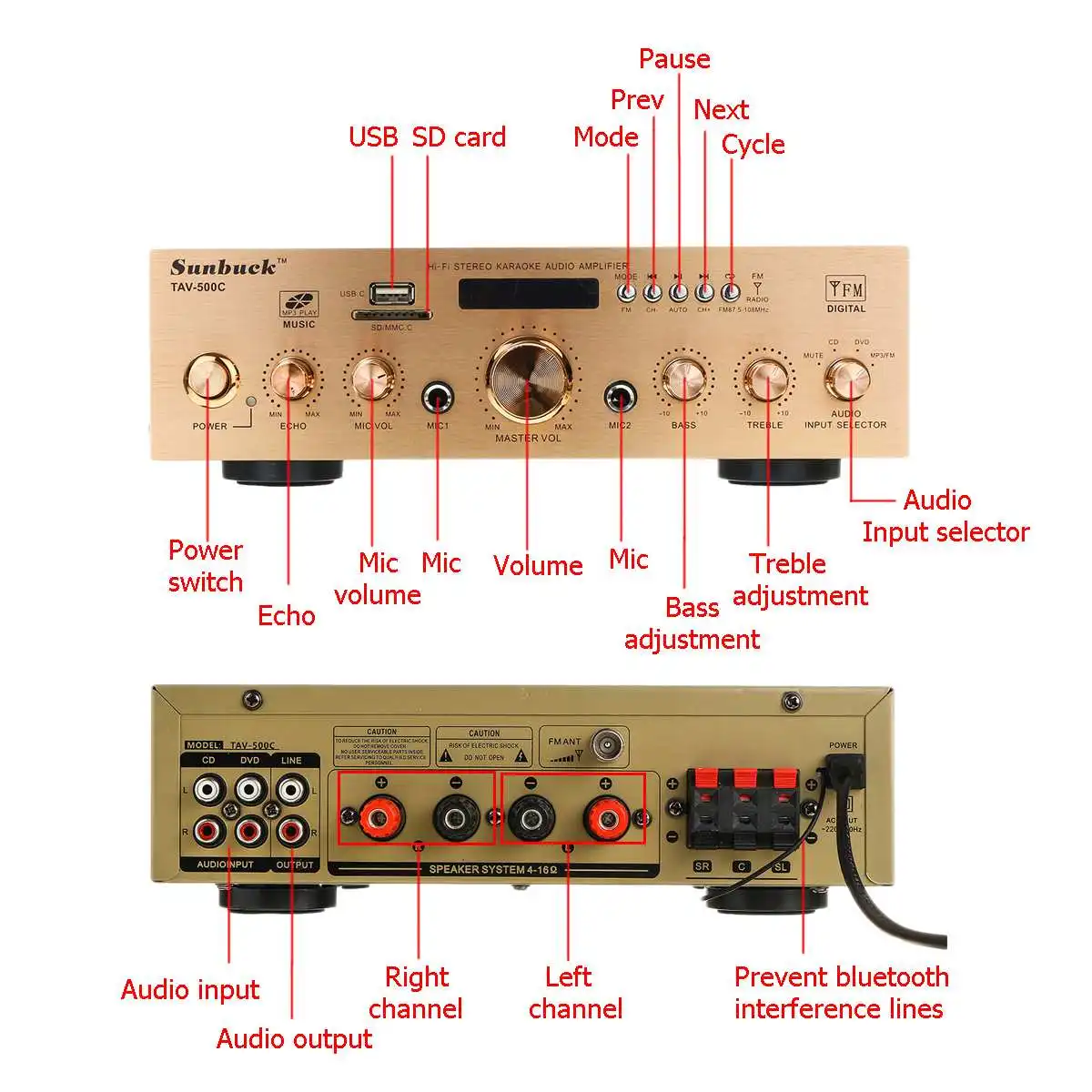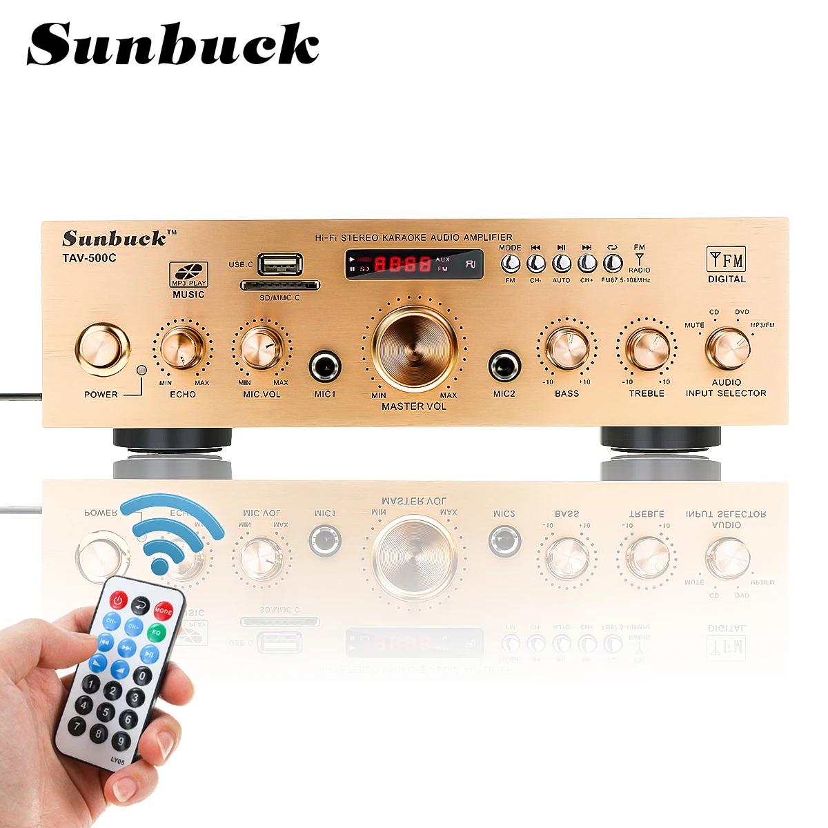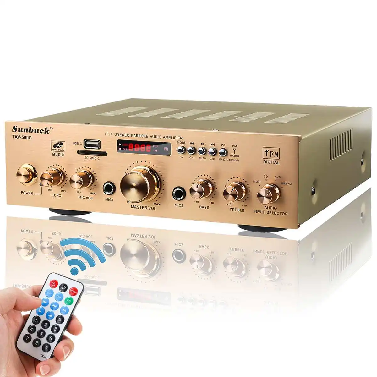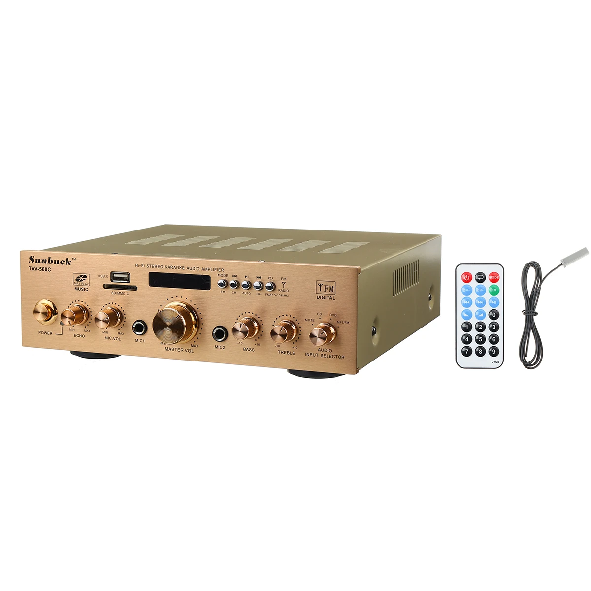 110V/220V bluetooth аудио Мощность усилитель поддержкой USB, SD карт памяти, 2 * Входной сигнал Mic