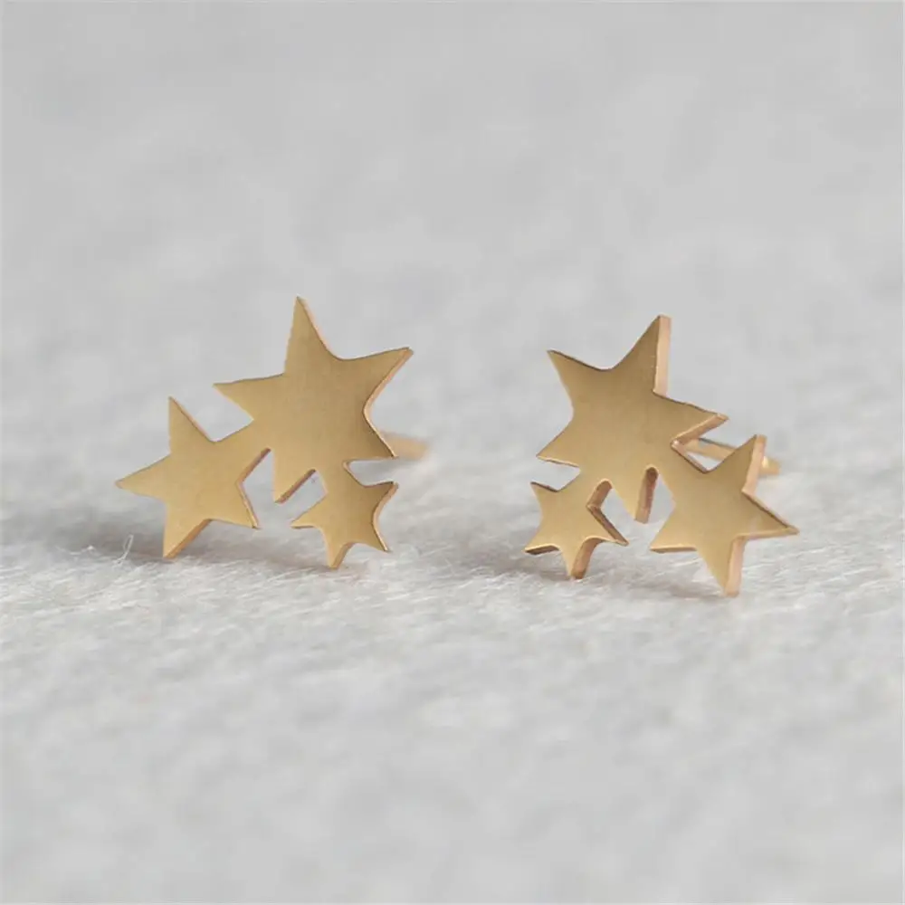 Женские серьги-гвоздики из нержавеющей стали с золотыми звездами, м...