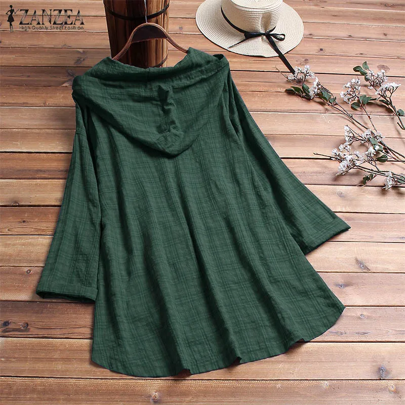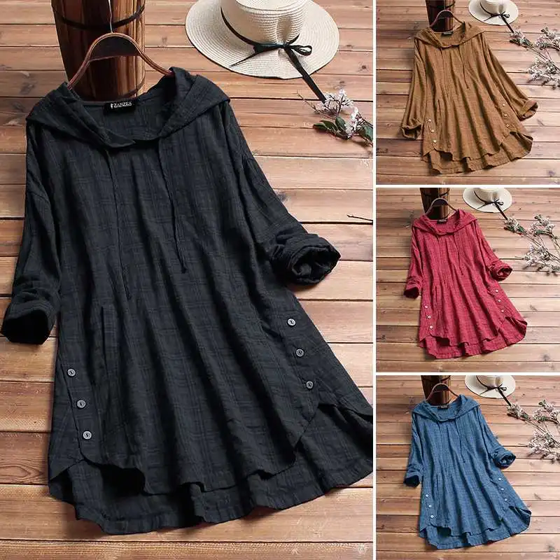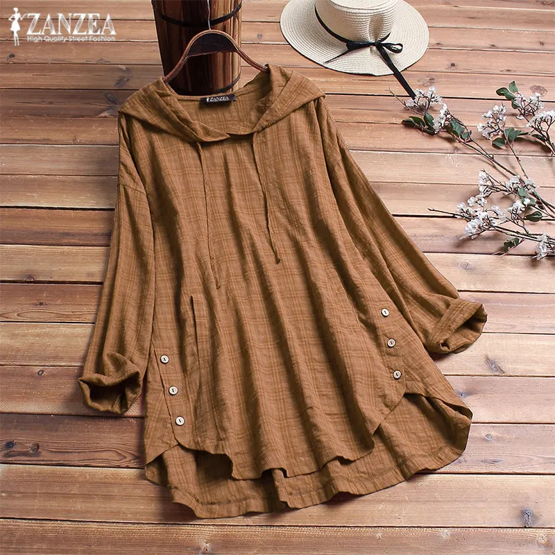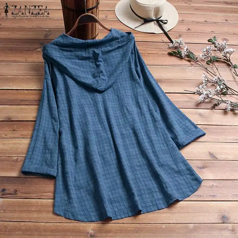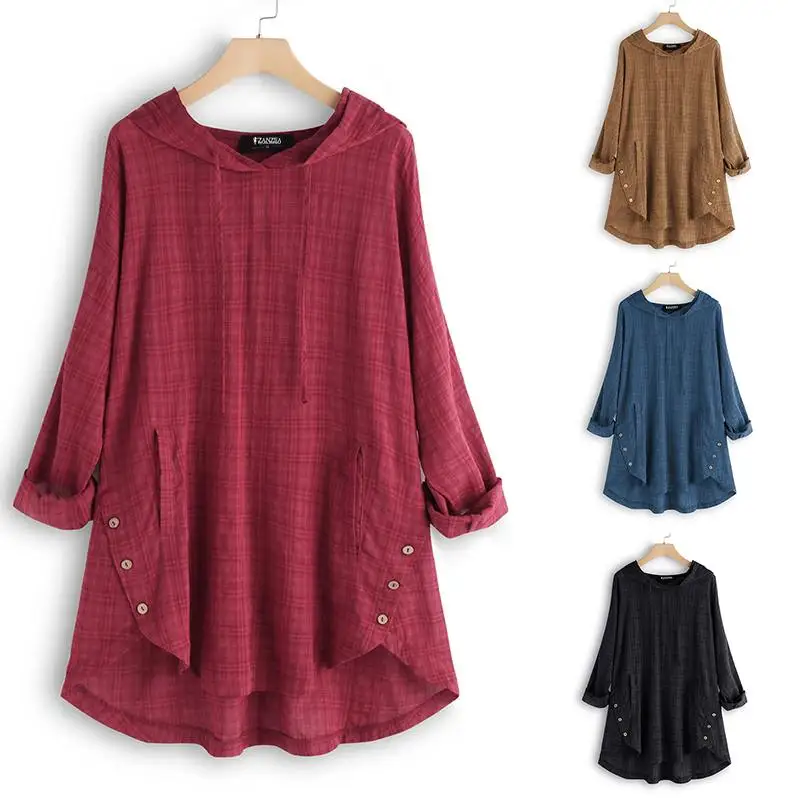 Женская Асимметричная блузка ZANZEA 2022, Стильные топы в клетку, повседневные рубашки с длинным рукавом, Женская Осенняя блузка