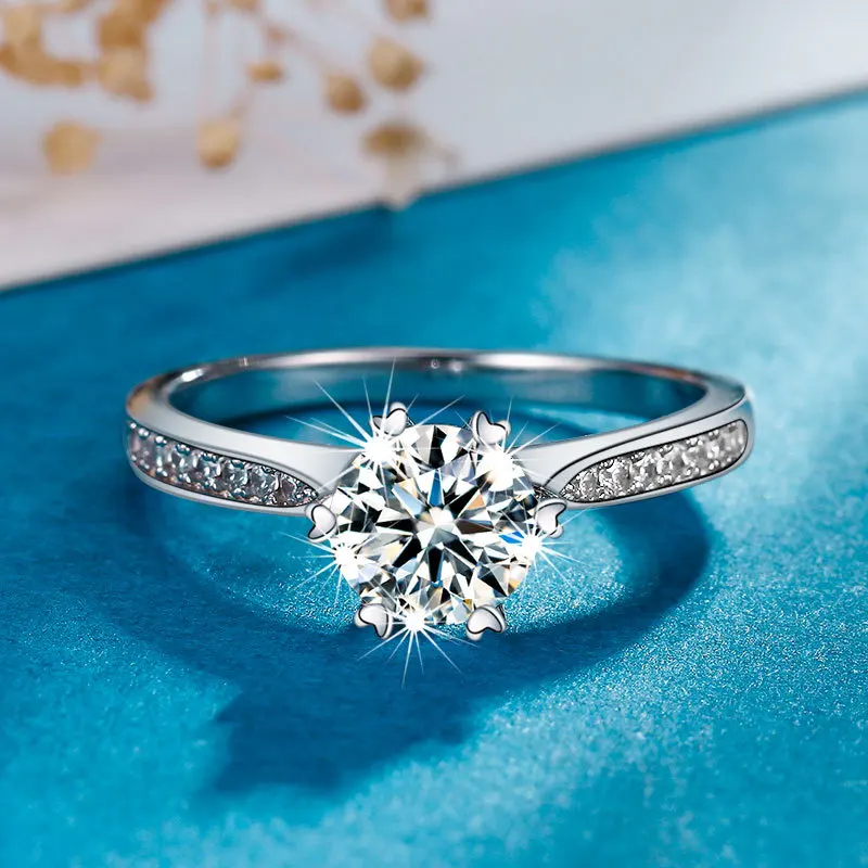 Кольцо женское из серебра 925 пробы, с муассанитом 1-2 карата