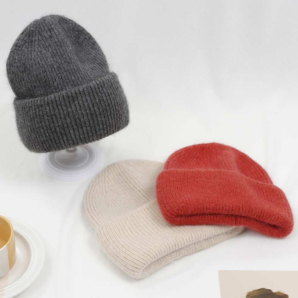 Лидер продаж, зимняя шапка, зимние шапки из натурального кроличьего меха для женщин, модные теплые облегающие шапки, Женские однотонные головные уборы для взрослых