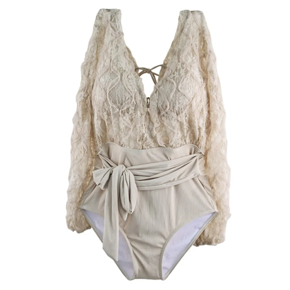 Купальник женский кружевной, однотонный, с длинным рукавом