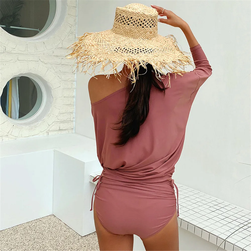 Сексуальный цельный купальник на одно плечо, Женский однотонный роз...