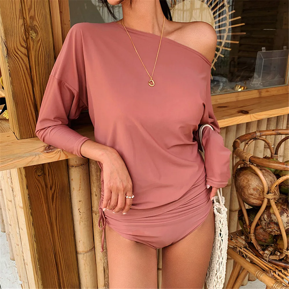 Женский однотонный купальник из двух предметов, с длинным рукавом и...