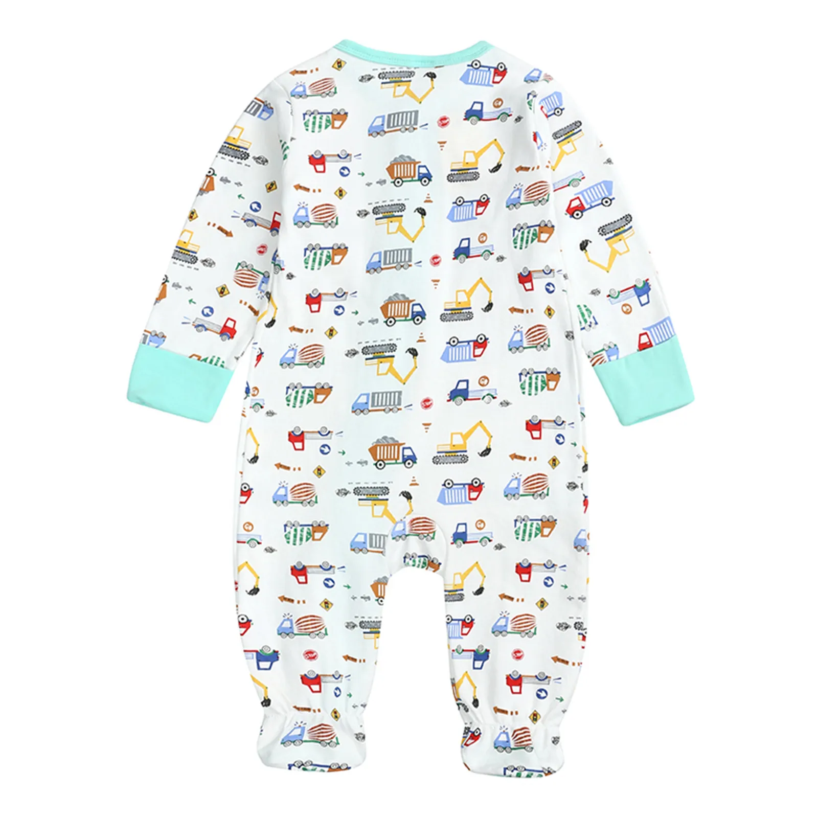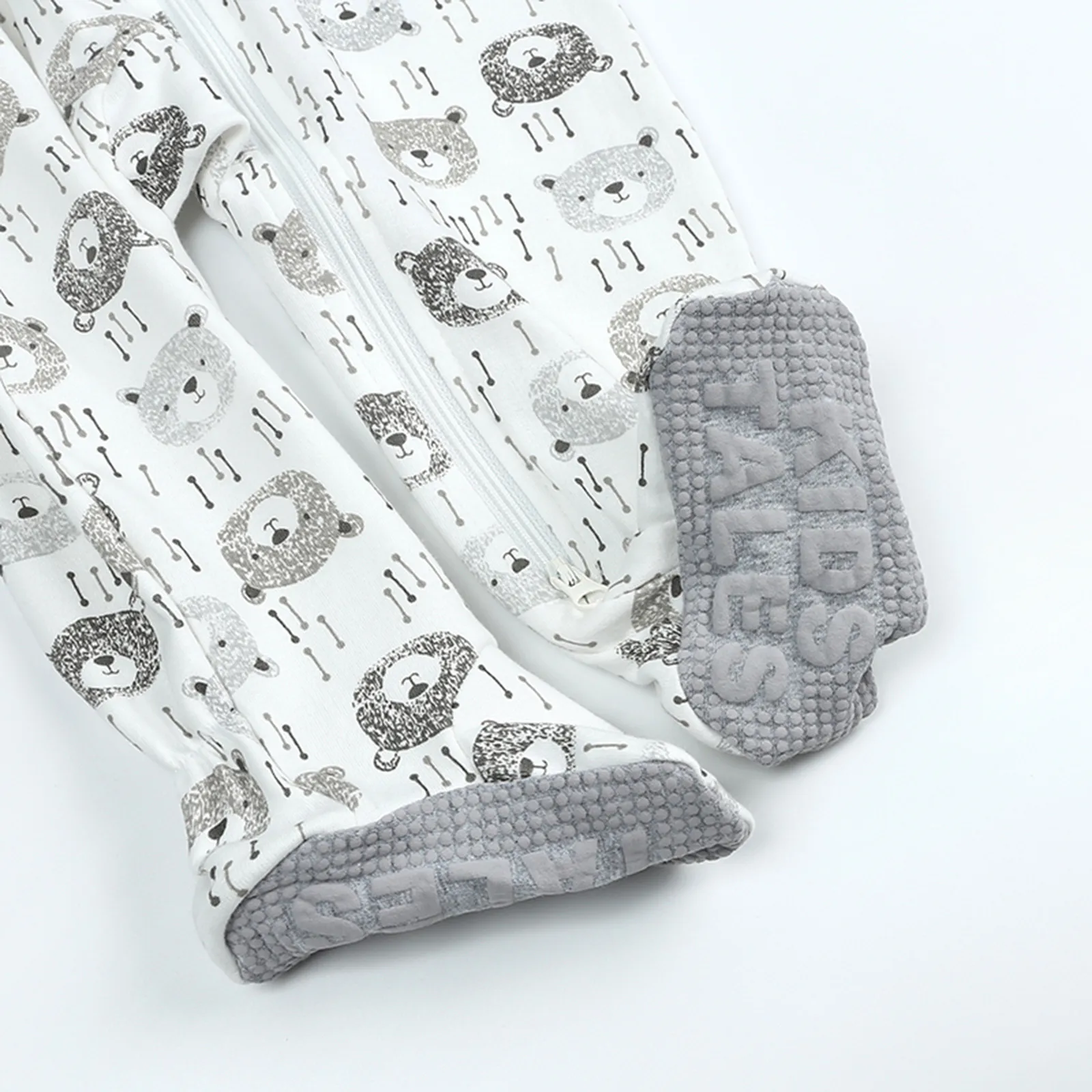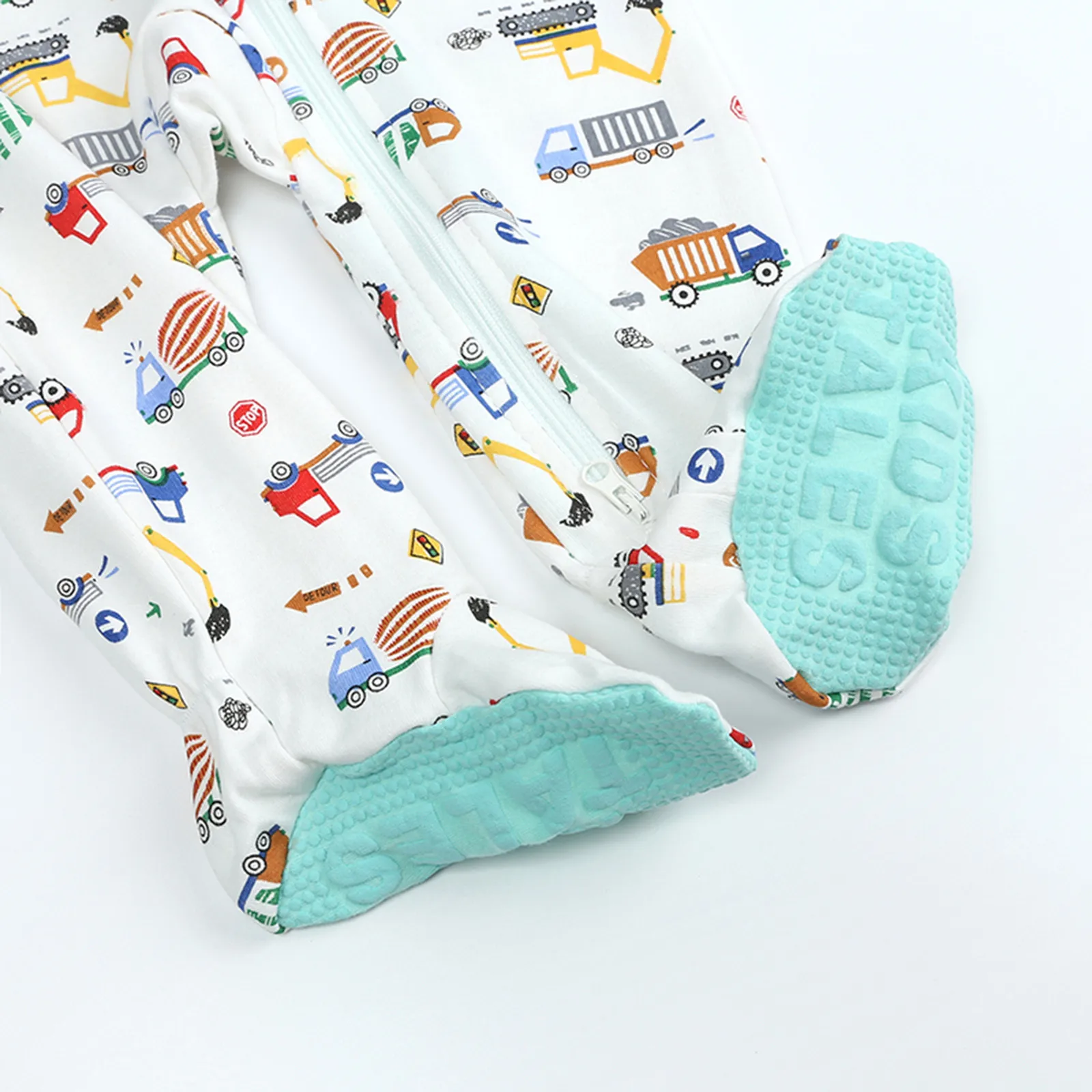 Комбинезон для новорожденных мальчиков и девочек с мультяшным принтом, нескользящая Пижама на молнии спереди