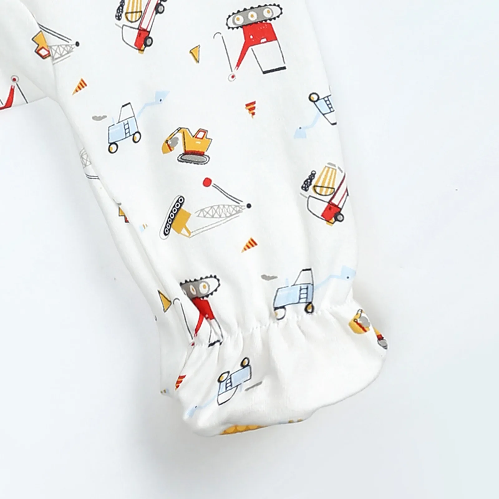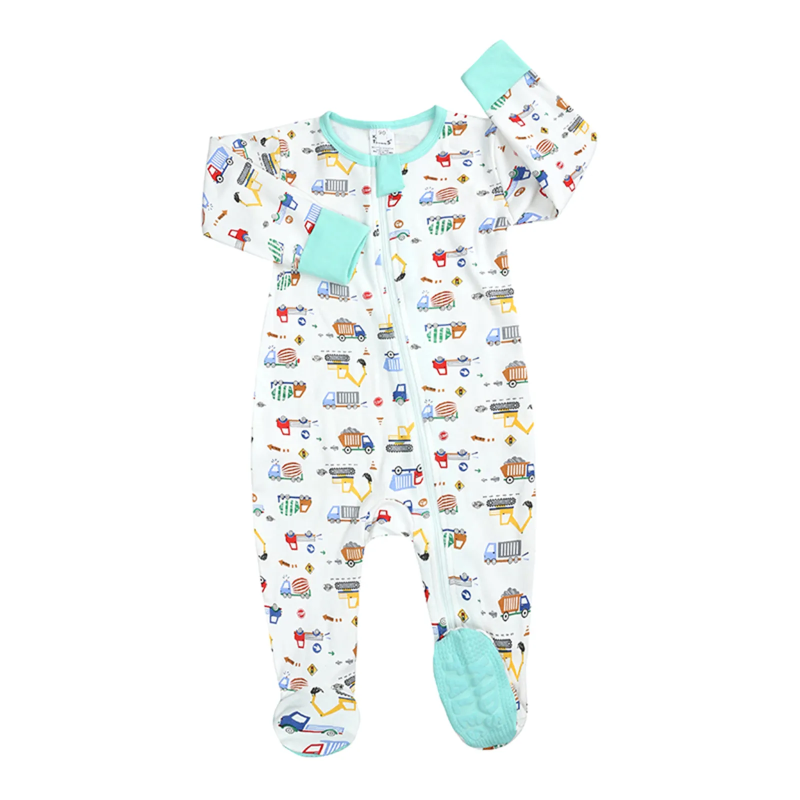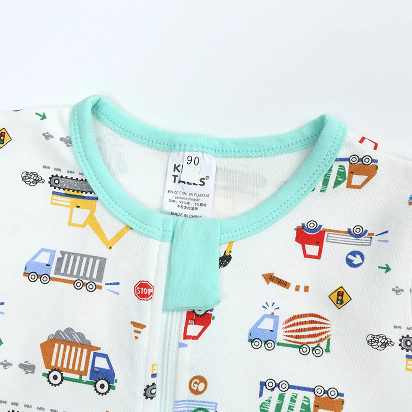 Комбинезон для новорожденных мальчиков и девочек с мультяшным принтом, нескользящая Пижама на молнии спереди