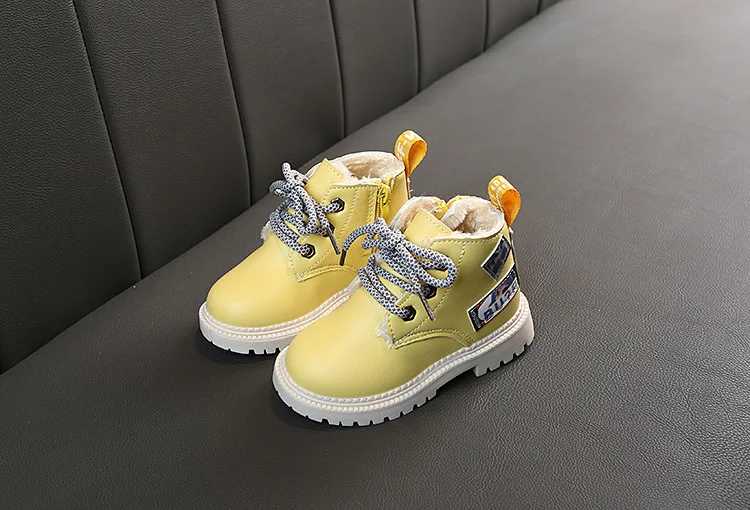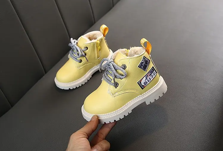 Новые детские зимние ботинки, новые зимние детские ботинки из хлопка, кожаные Плюшевые Ботинки Martin для мальчиков и девочек, водонепроницаемая Нескользящая теплая обувь