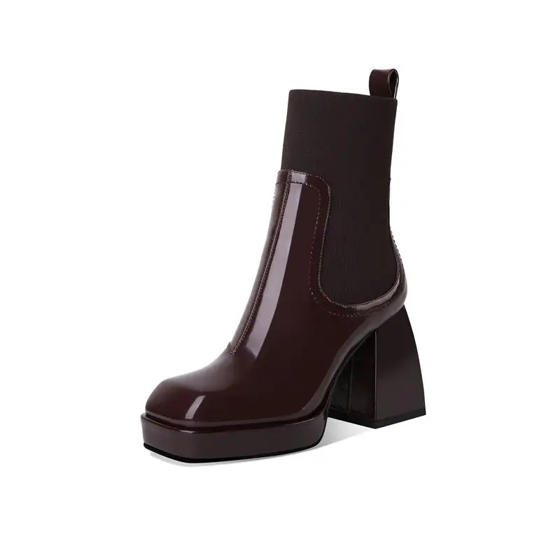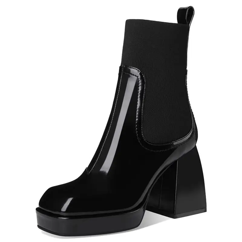 Женские ботильоны челси из натуральной кожи, на толстом высоком каблуке, с квадратным носком