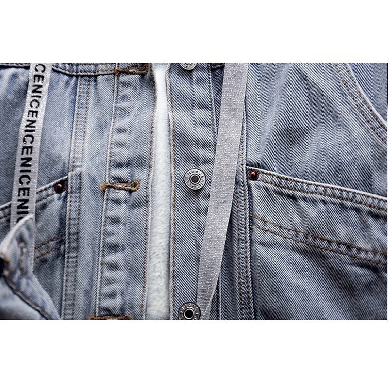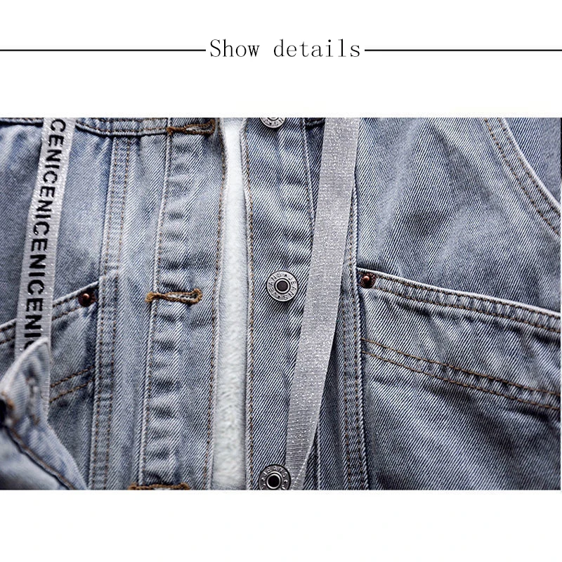 Однобортная джинсовая куртка с капюшоном для женщин, модная утепленная куртка из денима с бархатной подкладкой, с несколькими карманами, свободные джинсовые куртки