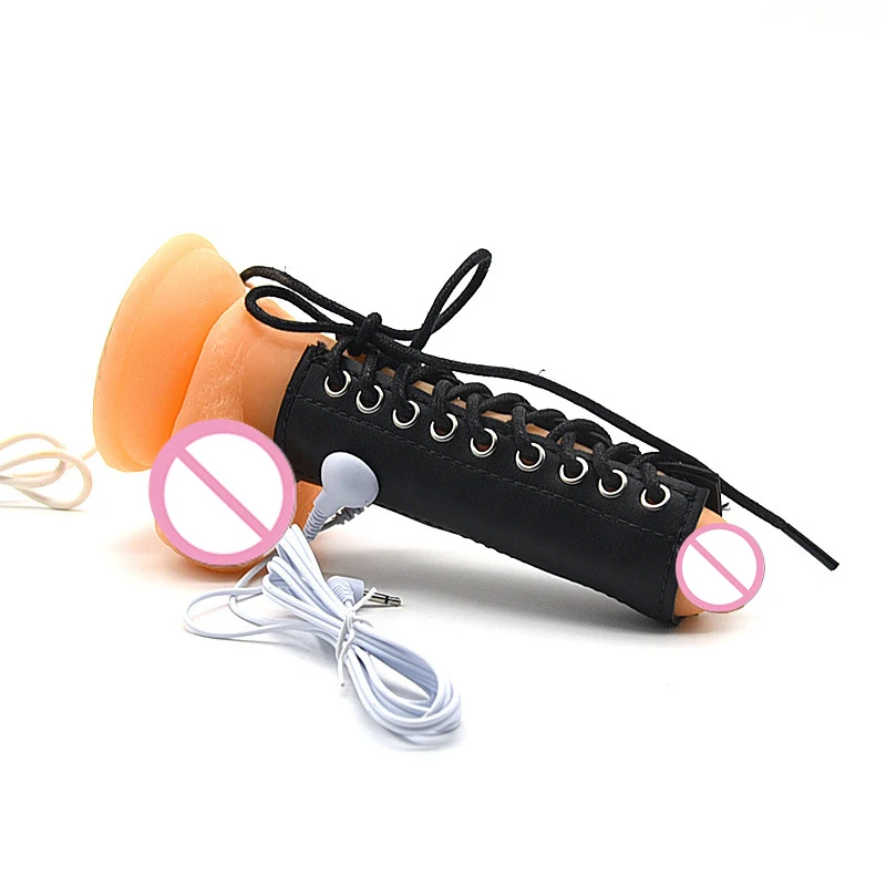 Из искусственной кожи Кольца для пениса с электрошоком, интимные игрушки для мужской мастурбации, удлинитель пениса, регулируемые кольца для члена E-stim