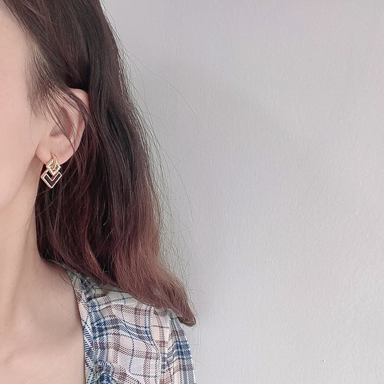 S925 игольчатые модные темпераментные большие простые квадратные Подвесные серьги для женщин и девушек очаровательные ювелирные изделия подарок LS822