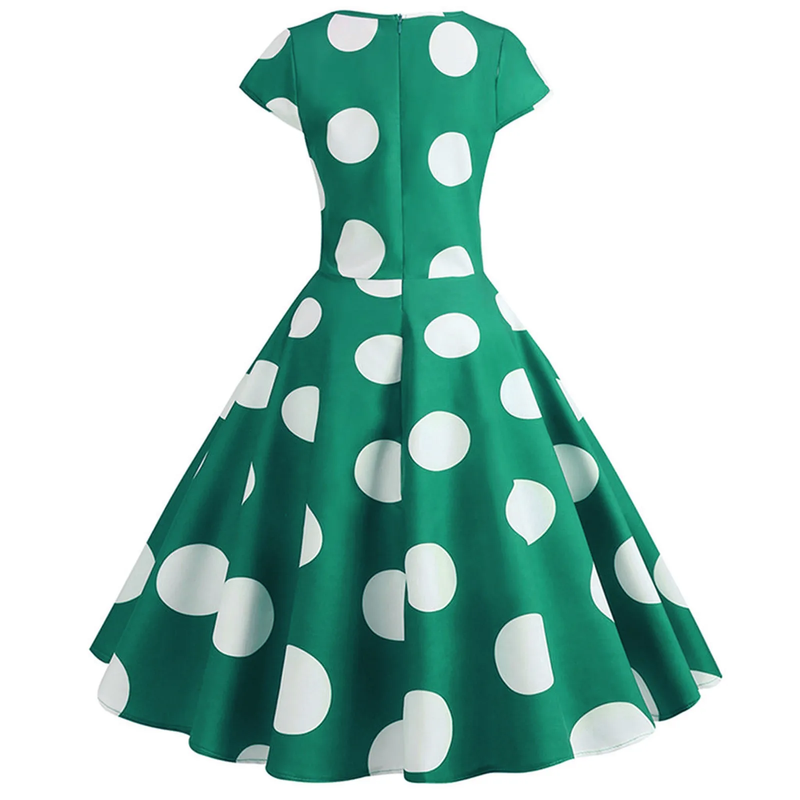 Женское винтажное ретро платье с коротким рукавом и принтом в горошек, вечернее платье для выпускного вечера