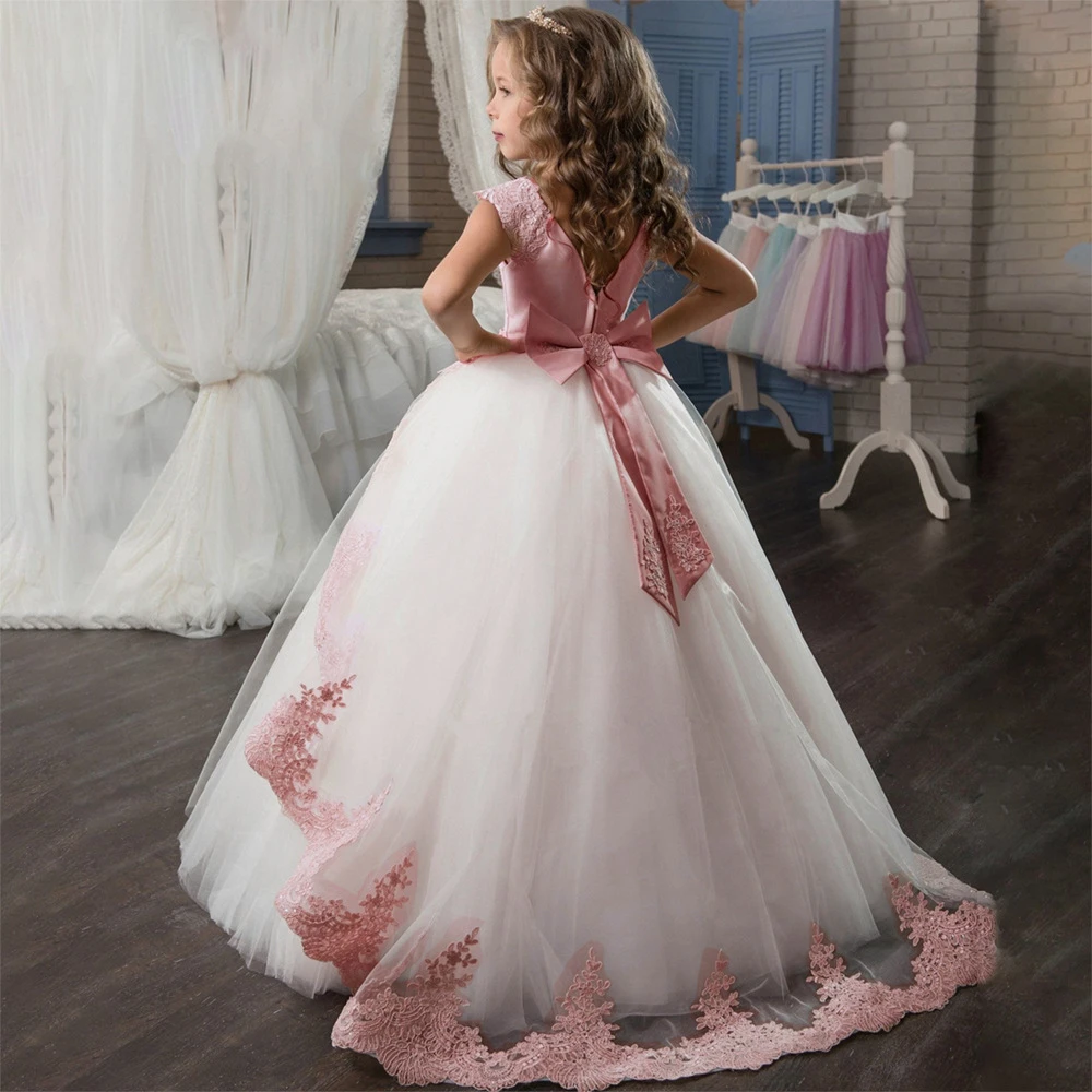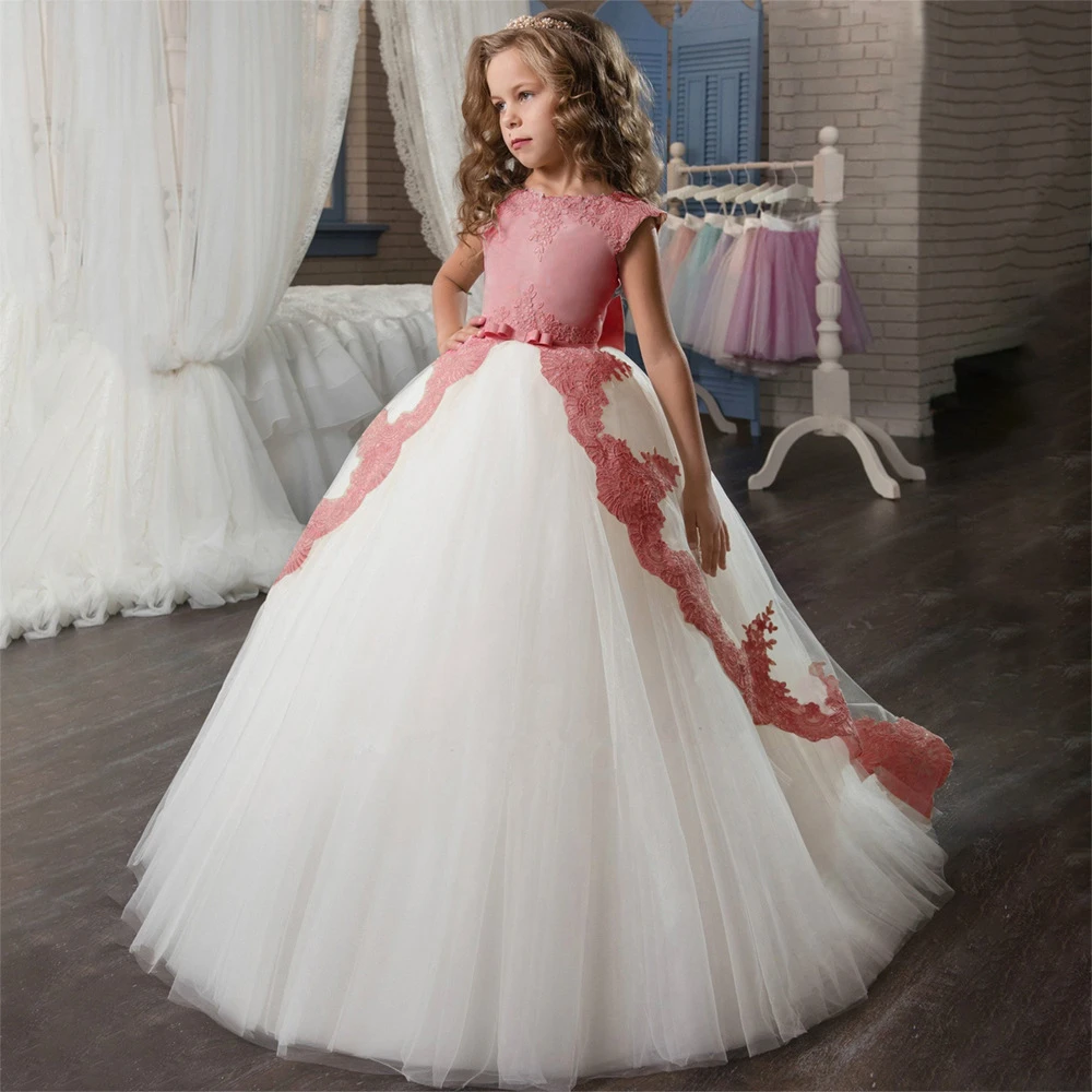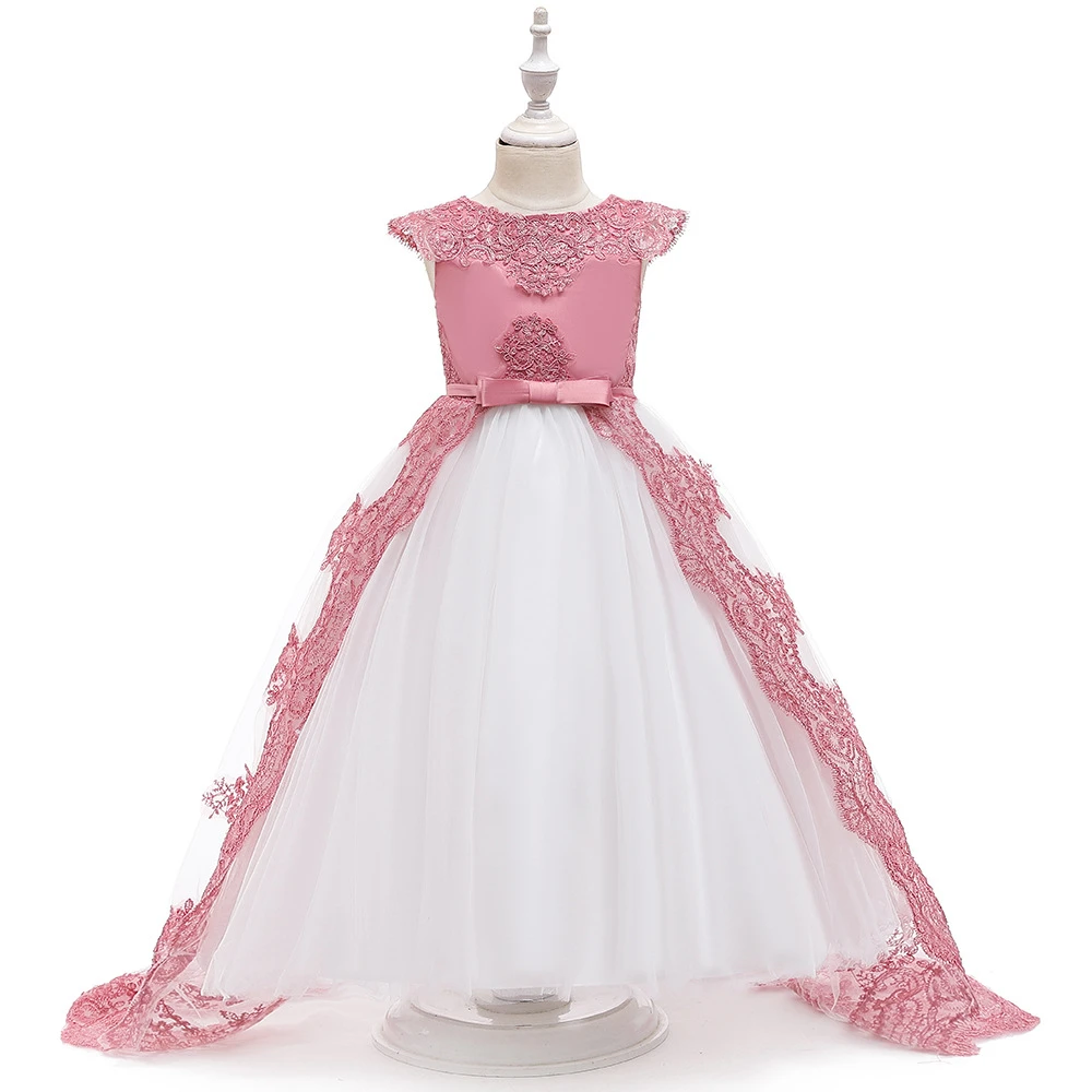 Эксклюзивные розовые вечерние платья для девочек-подростков с цветочной вышивкой и длинным шлейфом; Вечерние кружевные платья для девочек на день рождения; От 10 до 14 лет