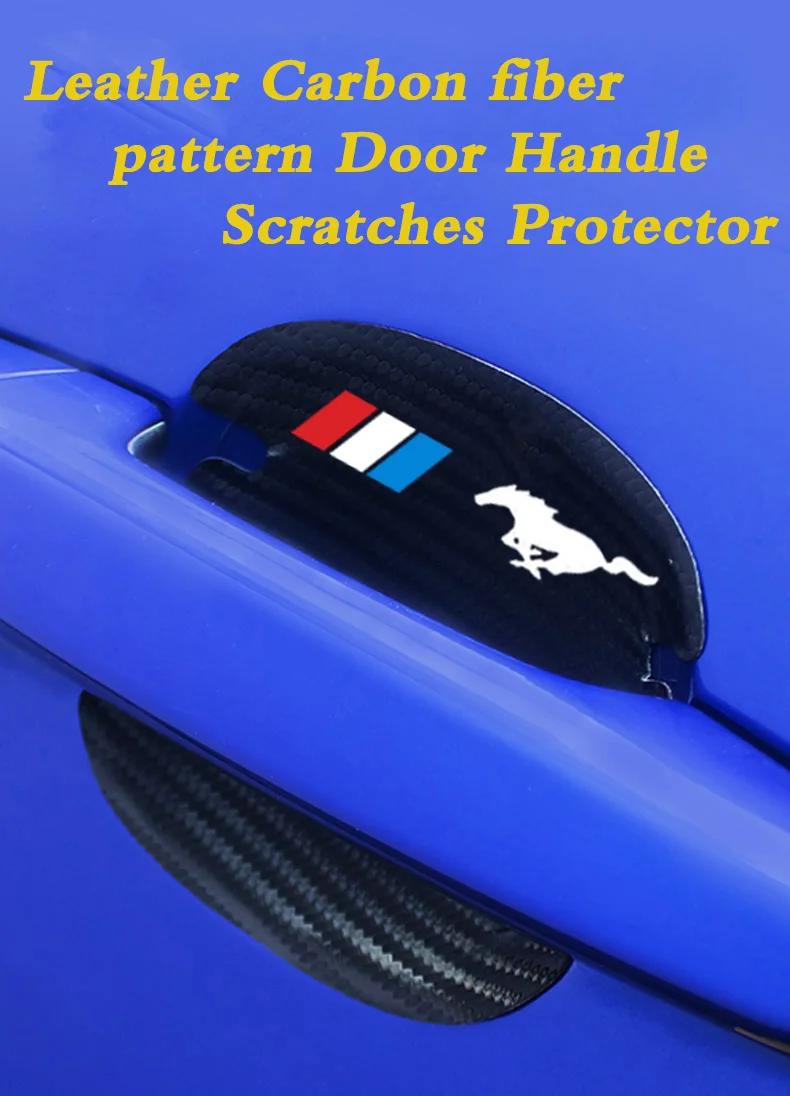 Автомобильный Защита 4 шт. углеродное волокно Кожа автомобилей дверные ручки защитная наклейка для Форд Мустанг gt аксессуары