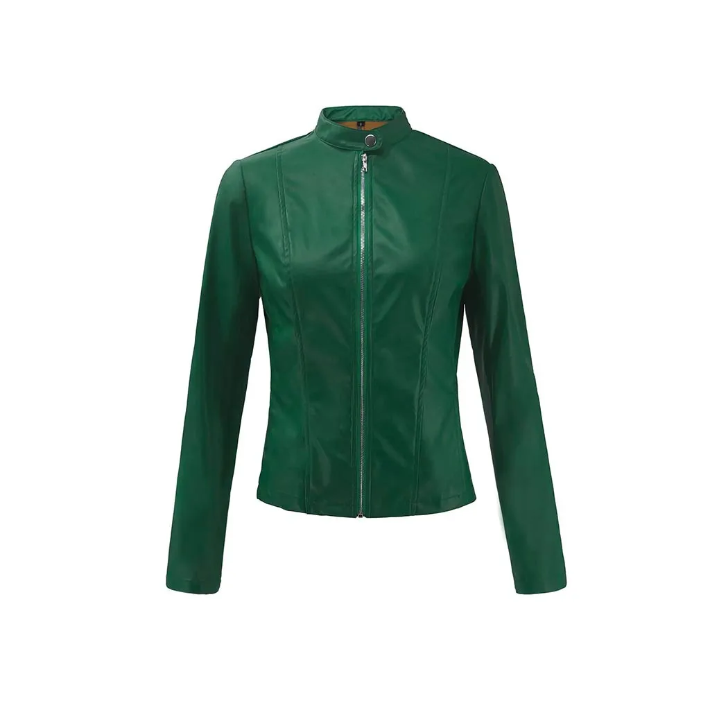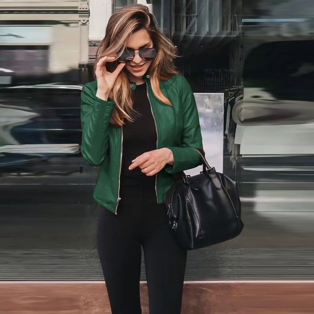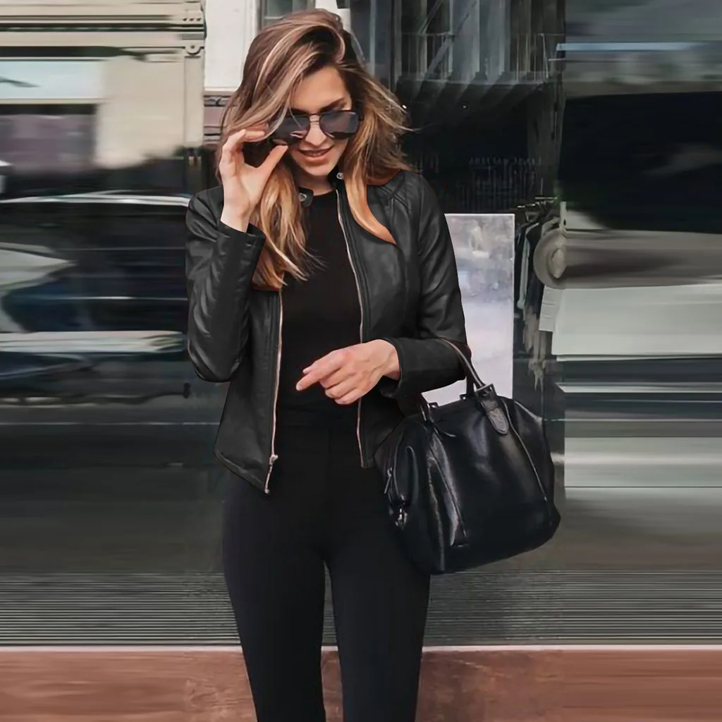 Женские повседневные кожаные куртки на молнии, мотоциклетные облегающие пальто с длинным рукавом, модные уличные осенне-зимние женские Куртки из искусственной кожи