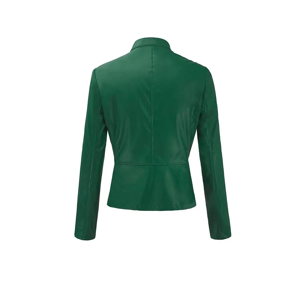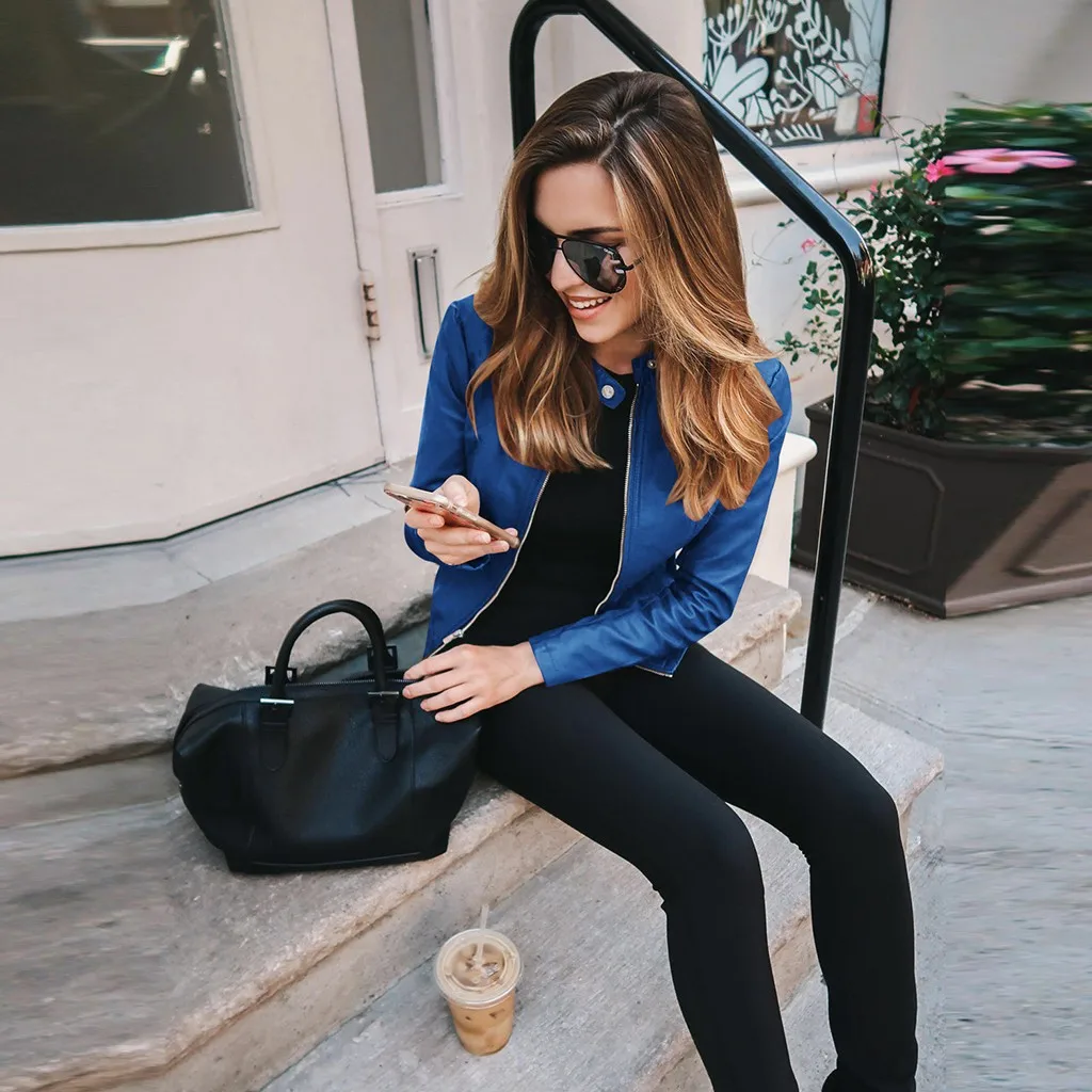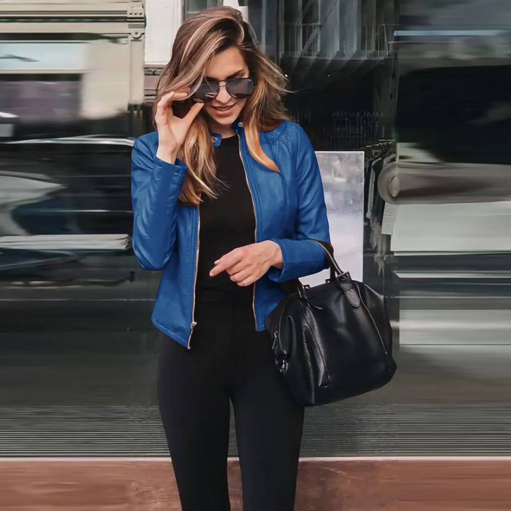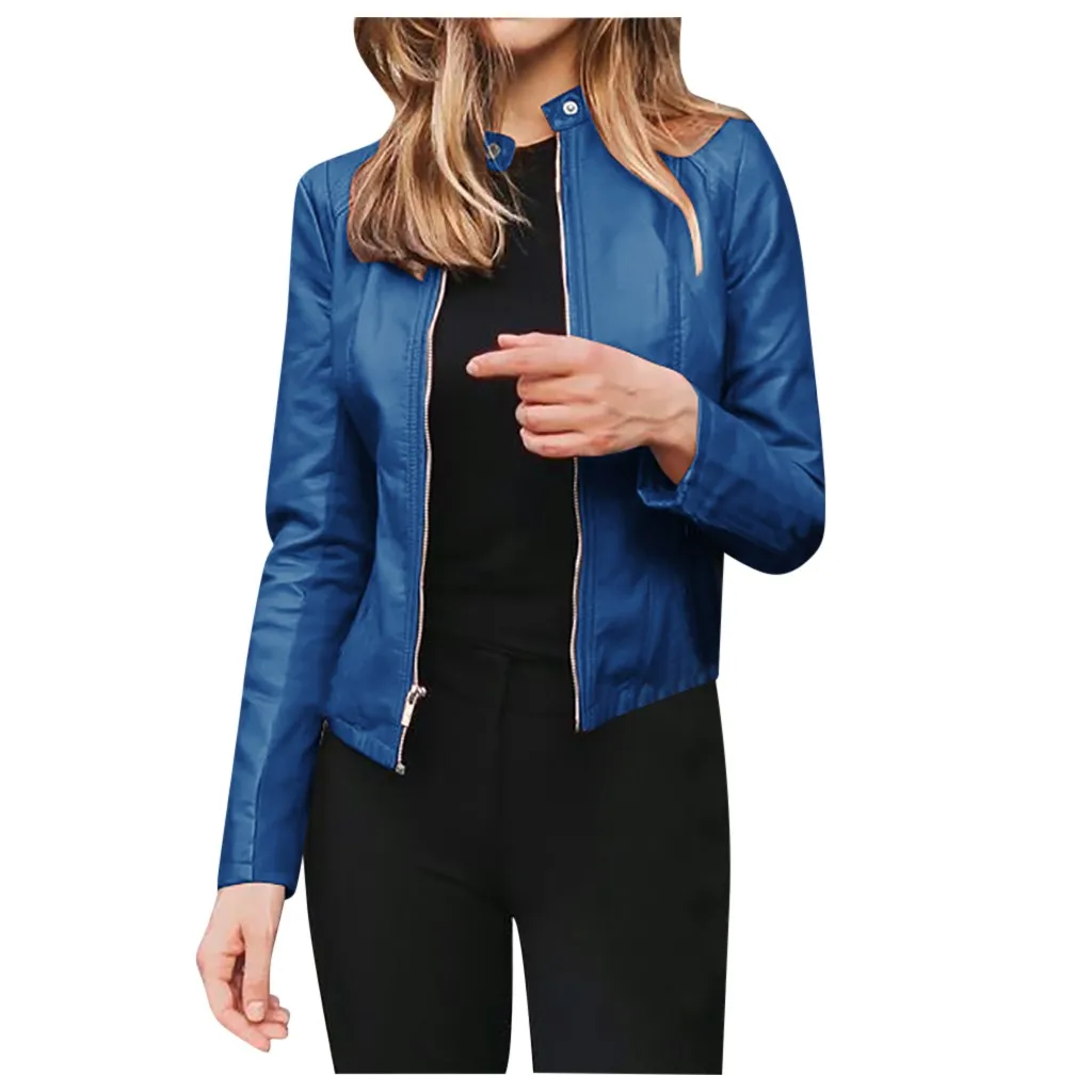 Женские повседневные кожаные куртки на молнии, мотоциклетные облегающие пальто с длинным рукавом, модные уличные осенне-зимние женские Куртки из искусственной кожи